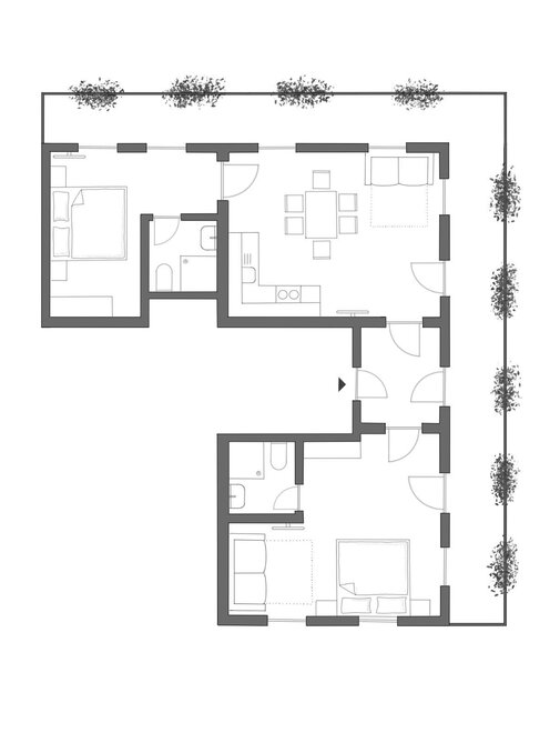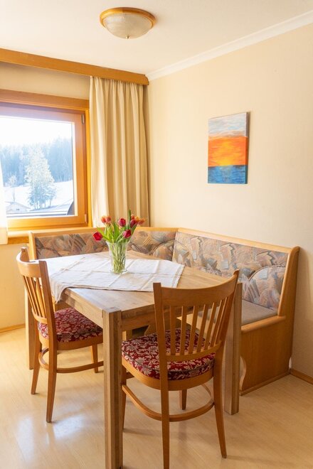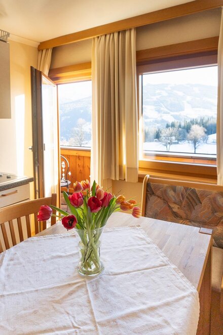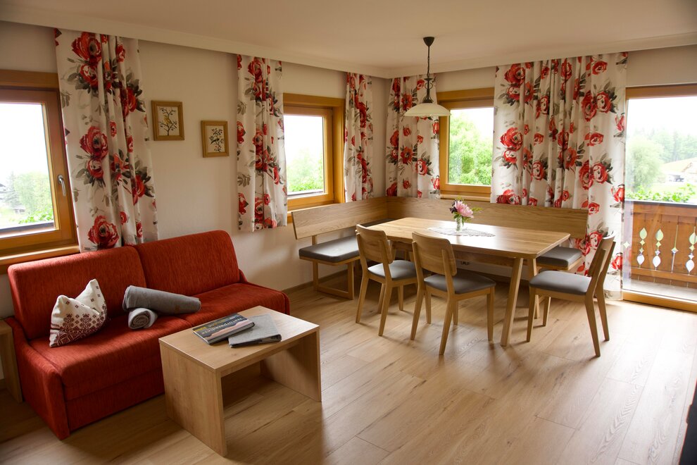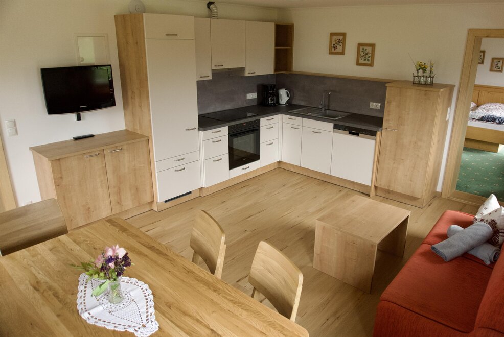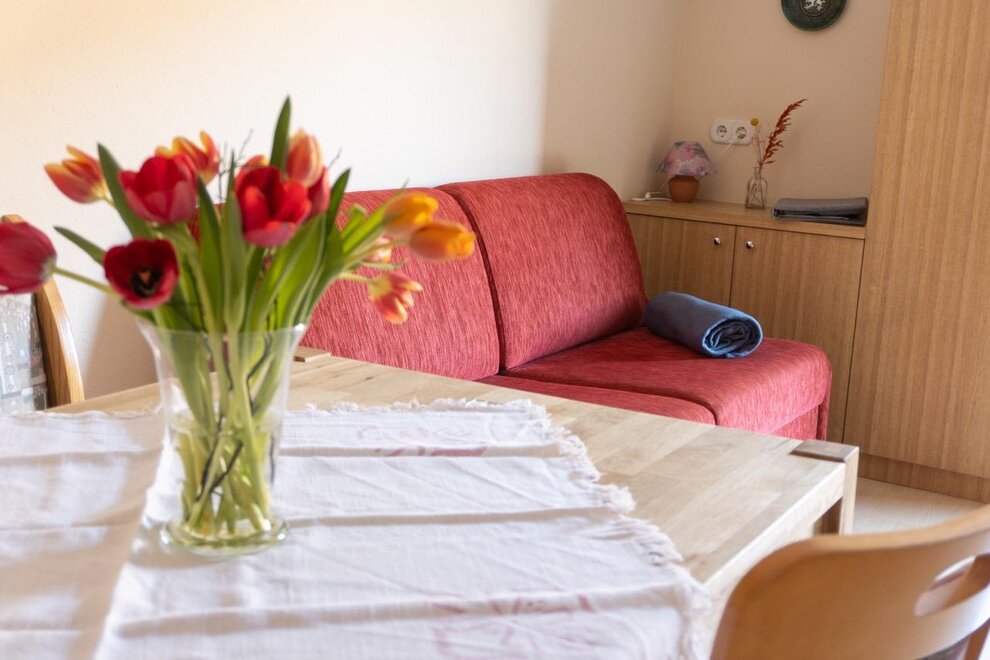 Naše láskyplně zařízené apartmány Ti nabízejí vše, co potřebuješ: plně vybavenou kuchyň, útulné postele, balkon s výhledem a spoustu prostoru pro pohodlí.