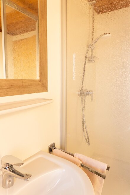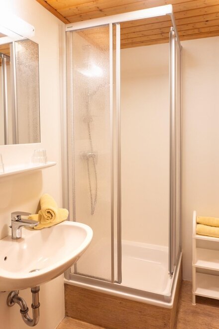 Po aktivním dni se můžeš uvolnit v naší malé, útulné sauně – s tepidáriem, parní saunou a přímým výstupem ven. Pro malou chuť máme farmářské speciality jako Käsekrainer, klobásy nebo Leberkäse – přímo z ledničky pro hosty.