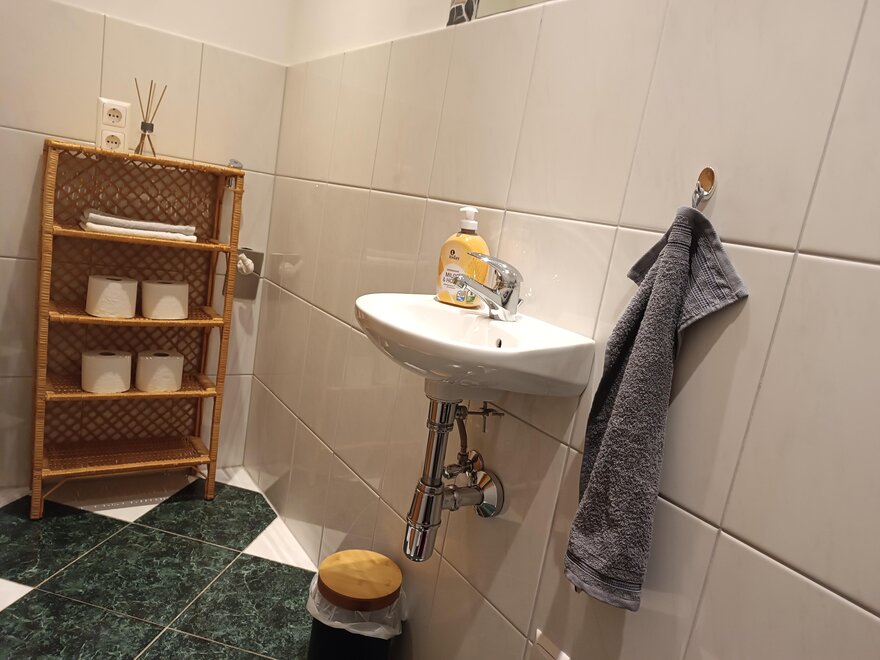 tekoucí studená/teplá voda, umyvadlo, sprcha, počet toalet: 2, koupací vana, oddělené WC, WC
