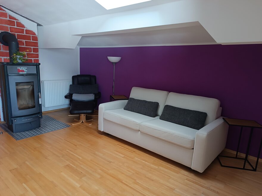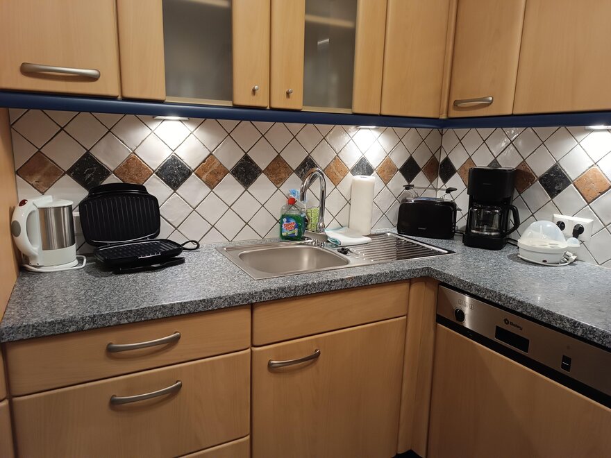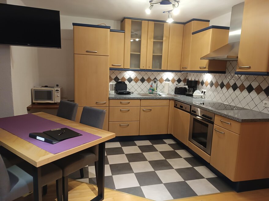 a good equipped kitchen with oven, microwave, dishwasher, refrigerator,... with dining area and high quality sofa bed (for 2 Persons)
