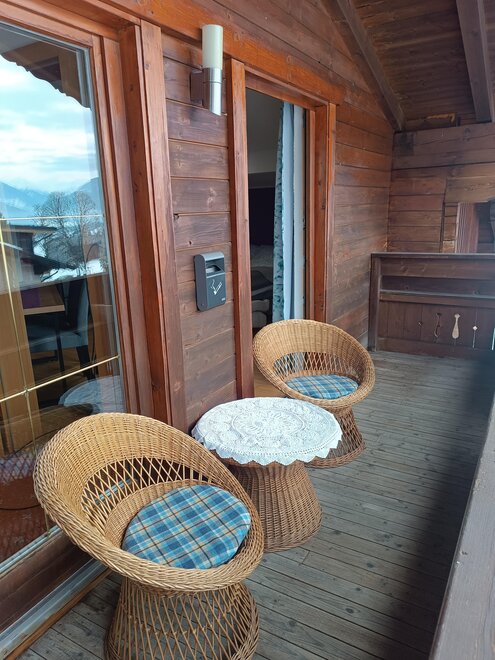 The south-facing balcony can be accessed from the bedroom and kitchen, and there is also a small terrace on the mountain side, as well as a