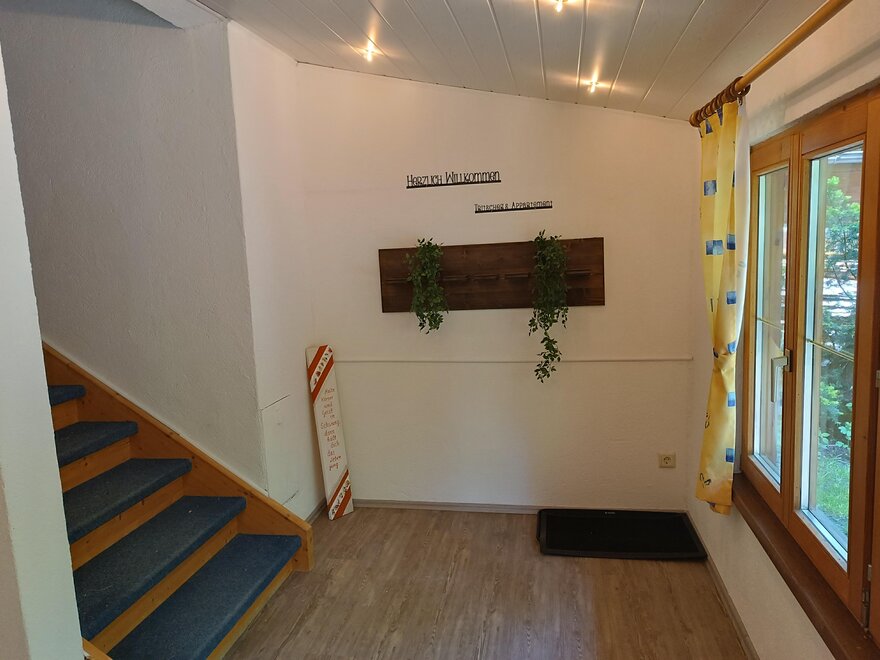 Ski boots, skis and poles can be stored in the spacious entrance area, and the small garden is located at the guest entrance
