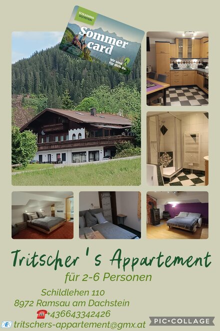 Rodinný dům s 1 apartmánem na slunném místě s výhledem na hory. Zážitek Rittisberg, koupací jezero, Rittiscoaster / letní bobová dráha, Flyline, lesní lanové centrum, lukostřelba, lyžařská škola, lyžařské vleky, sportovní obchod, půjčovna lyží, sjezdovky, běžecké tratě, turistické trasy, autobusová zastávka v blízkosti.