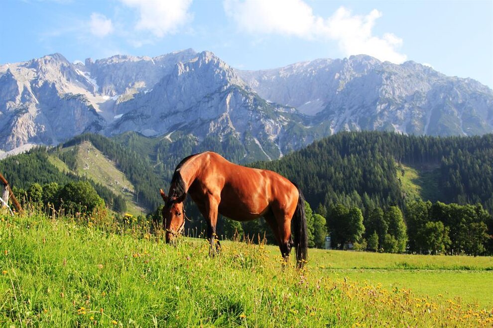 V srdci Horního Štýrska, na úpatí Dachsteinu v Ramsau, se nachází náš útulný ekologický statek Unerzhuber. Malebná přírodní scenérie před impozantním masivem Dachsteinu a výška ve třech úrovních – vysočina, alpská oblast a ledovec Dachstein – nabízí jedinečný a trochu jiný zážitek z dovolené pro každého. Ať už hledáte odpočinek nebo rodinnou dovolenou - u nás jste na správném místě!