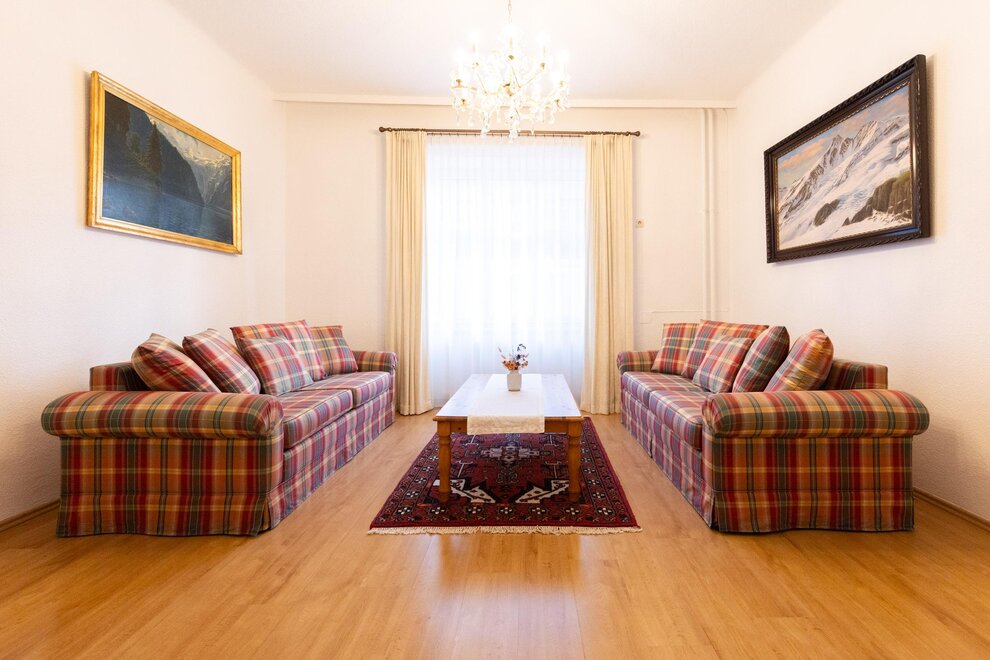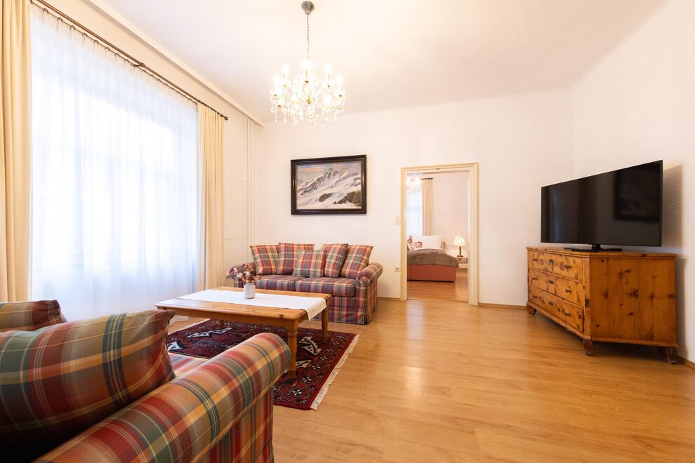Světlem prozářený apartmán v přízemí nabízí na 95 m² prostor pro až 4 osoby. Dva ložnice, koupelna s vanou, sprchou a WC, samostatné WC, plně vybavená kuchyň s troubou, elektrickým sporákem, myčkou na nádobí, lednicí s malým mrazákem, mikrovlnnou troubou, topinkovačem a Nespresso kávovarem, útulný obývací pokoj a vlastní přístup přes verandu vytvářejí stylový domov s výjimečným kouzlem historické vily Stephanie.