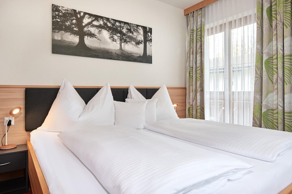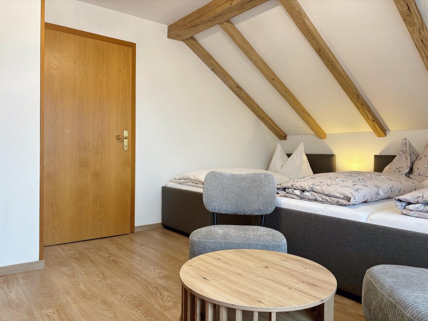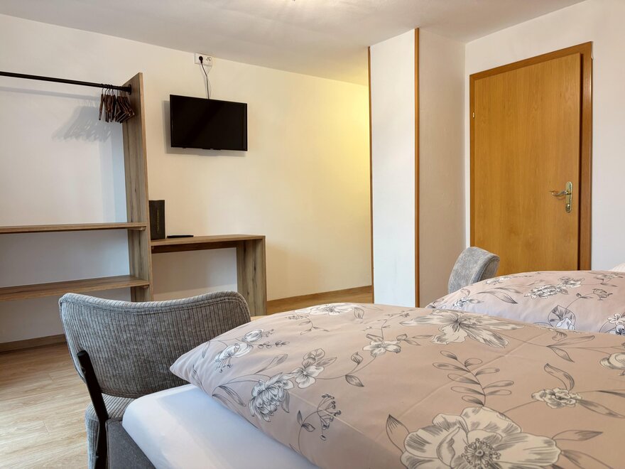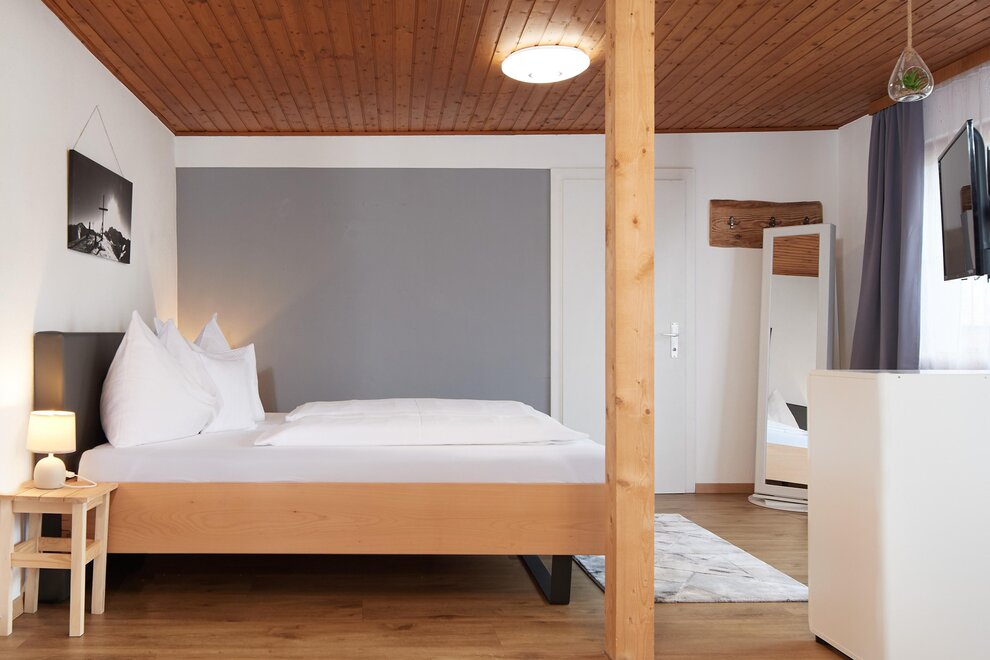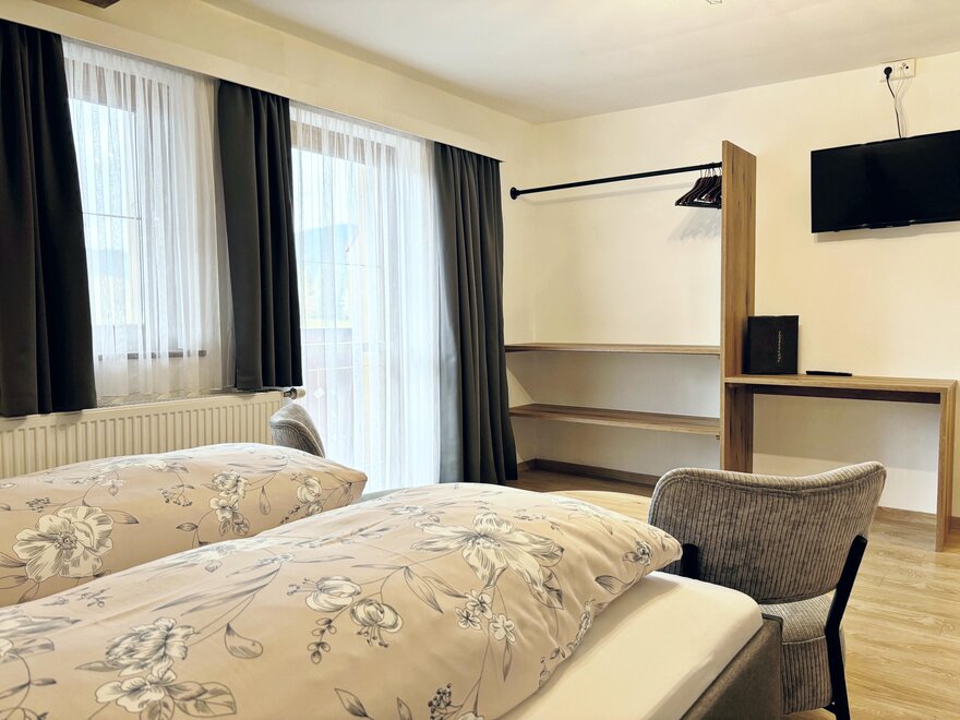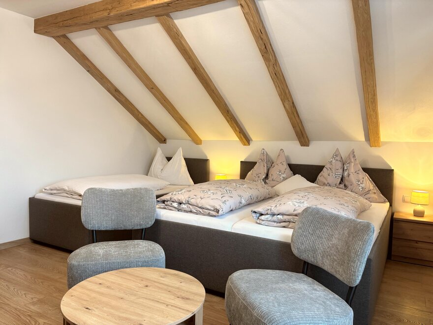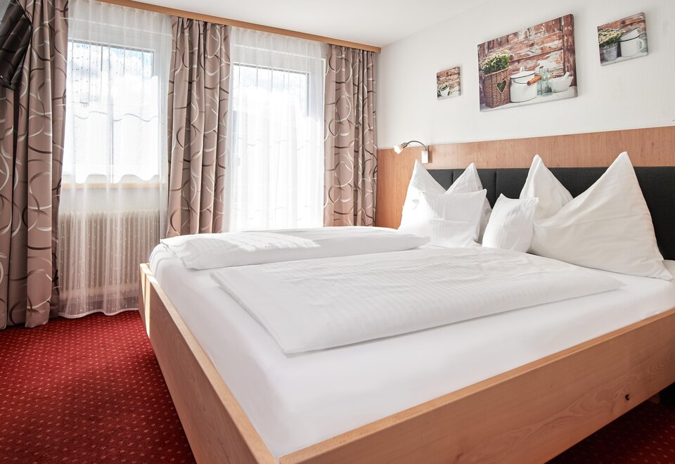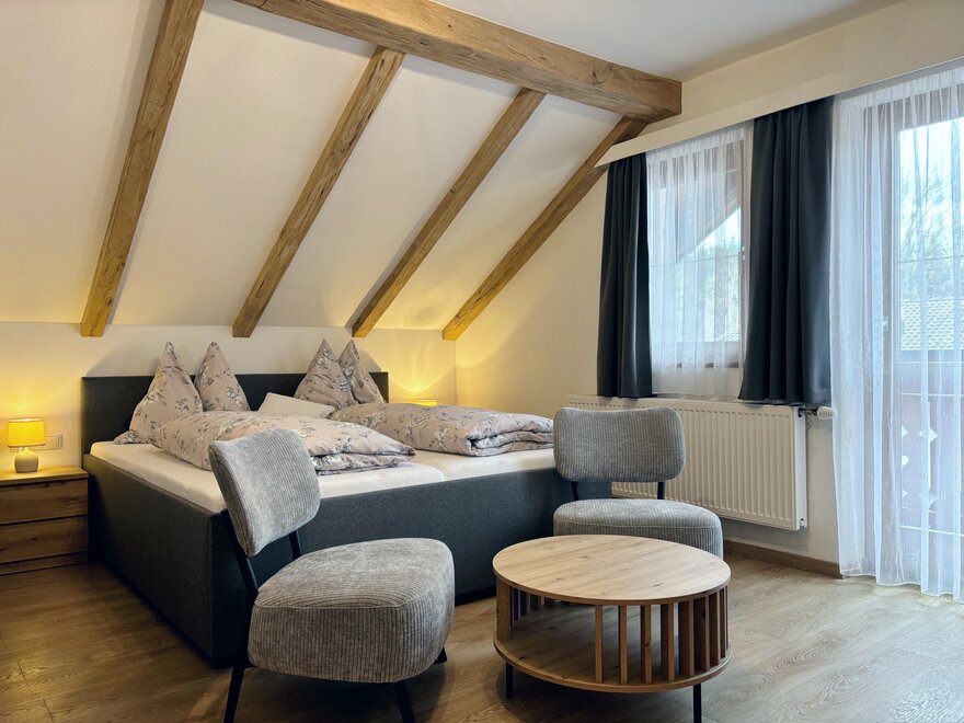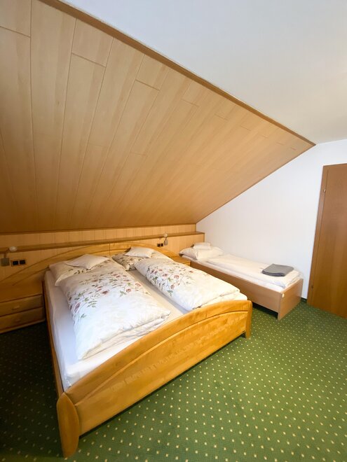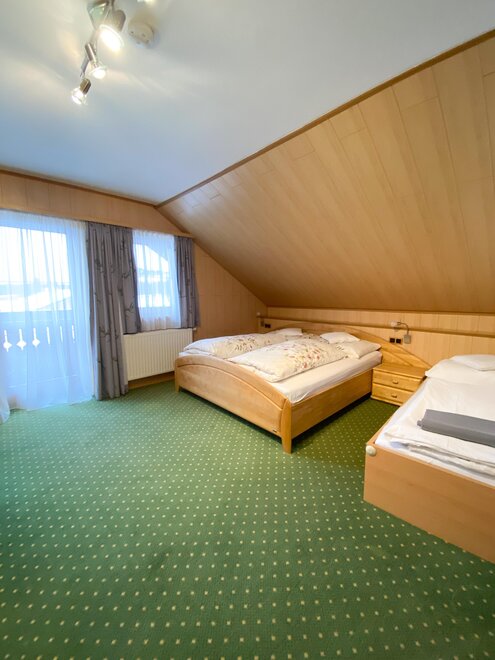 Naše láskyplně zařízené rodinné pokoje nabízejí místo pro až tři osoby a jsou ideální pro relaxační dovolenou v horách. Útulný komfort bydlení zahrnuje ložnici s pohodlnou manželskou postelí a kobercem, stejně jako oddělený malý prostor pro děti s jednolůžkem – ideální pro rodiny s dítětem.