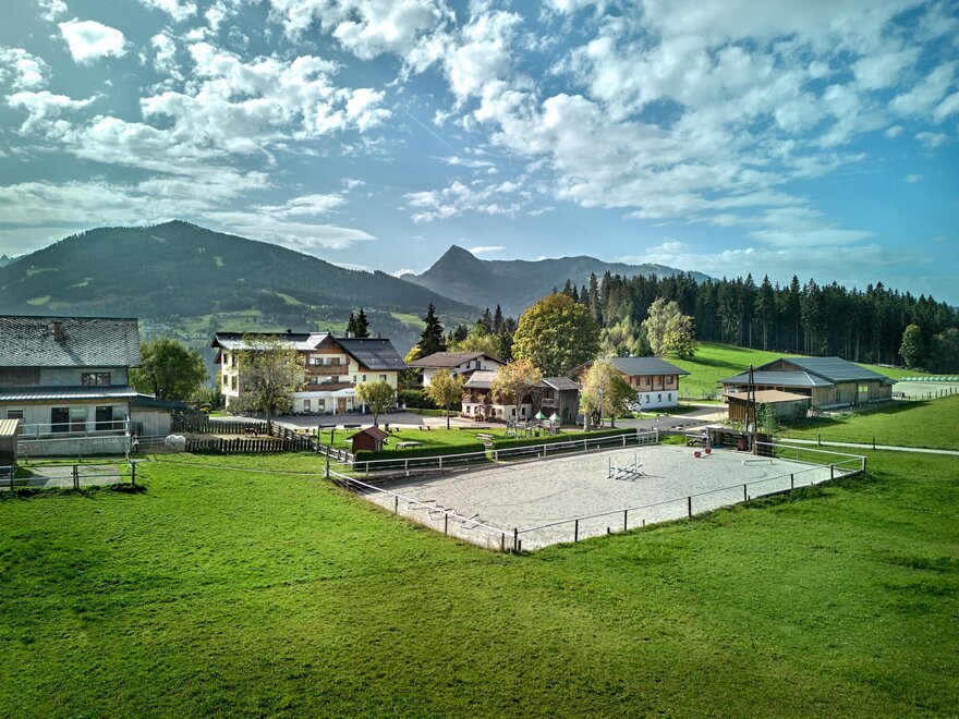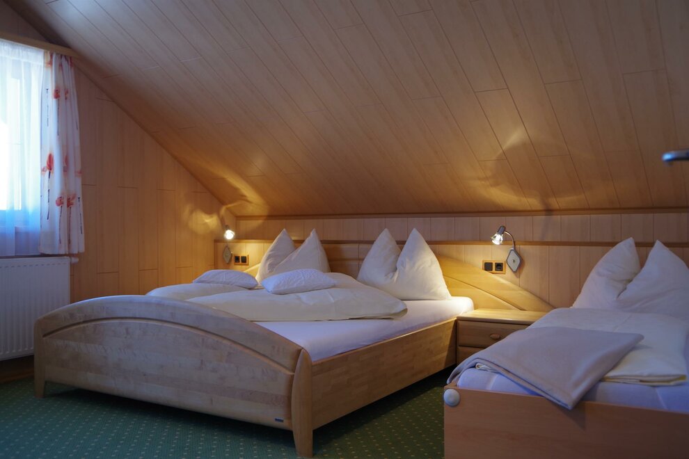 Naše zemědělské stavení s typickým alpským šarmem je obklopeno barevnými loukami a nabízí s nádherným horským panoramatem oázu klidu a odpočinku, daleko od hluku silnic a shonu. Světlé, rodinnému pobytu přátelské pokoje a apartmán s plně vybavenou kuchyní nabízejí dostatek prostoru pro pohodlný pobyt celé rodiny. Všechny prostorné nekuřácké pokoje mají sprchu, WC, satelitní TV, Wi-Fi a balkon s krásným výhledem na hory. Hosté našeho apartmánu mohou ráno čerpat z každodenního pečiva. Naše bohatá snídaně formou bufetu s produkty z regionálního zemědělství vás skvěle posílí na aktivní den.