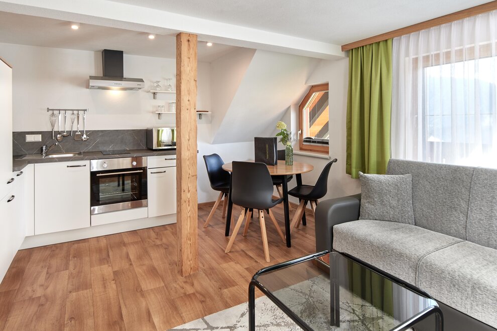 Náš prostorný a vkusně zařízený apartmán nabízí vše potřebné pro relaxační pobyt. Světlá kuchyň s jídelním koutem disponuje pohodlnou rozkládací pohovkou, která je určena pro 1–2 osoby – ideální pro 2 děti nebo jednoho dospělého.