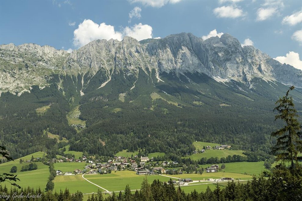 Sv. Martin leží na úpatí mocného Grimmingu, malebná vesnička zasazená do rozsáhlé lesní a louční krajiny údolí Enns.