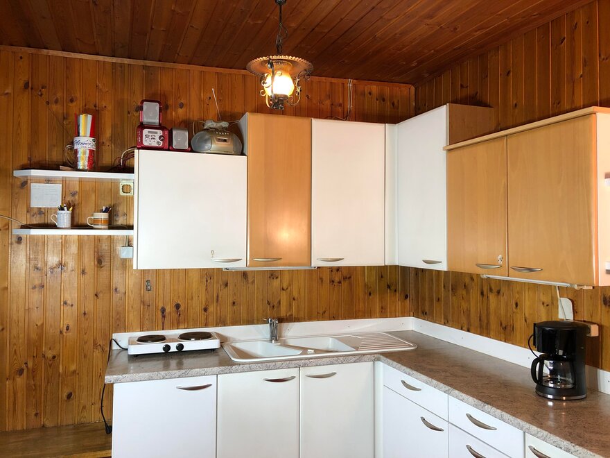 Chata pro vlastní potřebu s obytnou kuchyní s velkým posezením a spací místností se zvýšenými patrovými postelemi pro 10 osob