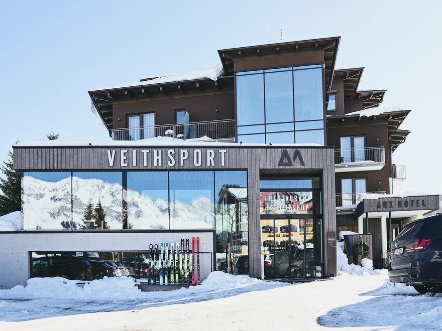 Vzrušující. Ležérní. A tak VEITH. Hotel ARX vám také nabízí vlastní sportovní obchod s půjčovnou lyží a lyžařským servisem. Těšte se na pečlivě vybírané sportovní produkty, odborné poradenství, individuální úpravy lyží a přizpůsobení bot. A to nejlepší: Jako host hotelu ARX získáte 15% slevu na lyžařský servis a půjčovnu lyží, produkty v obchodě a přizpůsobení bot získáte o 10% levněji. I při online rezervacích získáte 15% slevu na půjčovnu lyží.