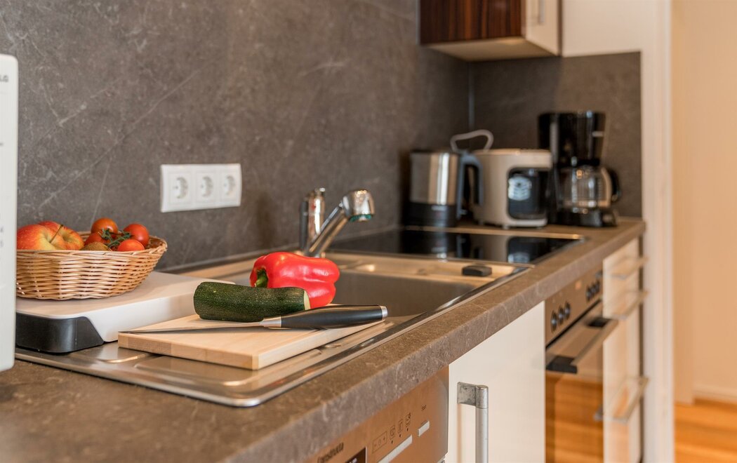 - Kuchyně dobře vybavená kávovarem, elektrickým sporákem, troubou, chladničkou, mrazákem, myčkou nádobí