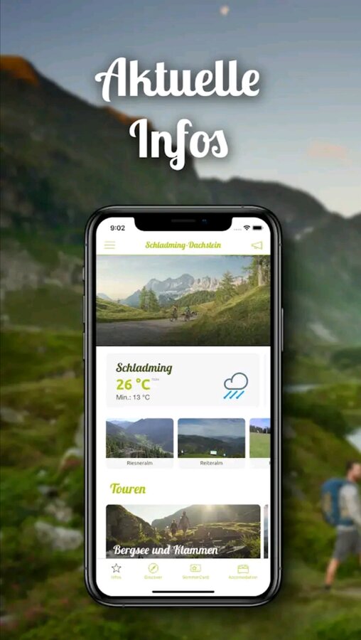 Bitte beachtet, dass sich die App noch in einer Beta-Version befindet – wir sind also noch in Entwicklungsprozessen starten daher ganz „sanft“.  Umso wichtiger ist es, dass wir Personen haben, die die App in der Praxis testen und ihre Erfahrungen mit uns teilen. Sende uns einfach ein kurzes E-Mail auf info@schladming-dachstein.at und gib uns ein kurzes Feedback zur App - so können wir nächste Saison mit einem tollen Produkt für Gäste und Einheimische in den Sommer starten.