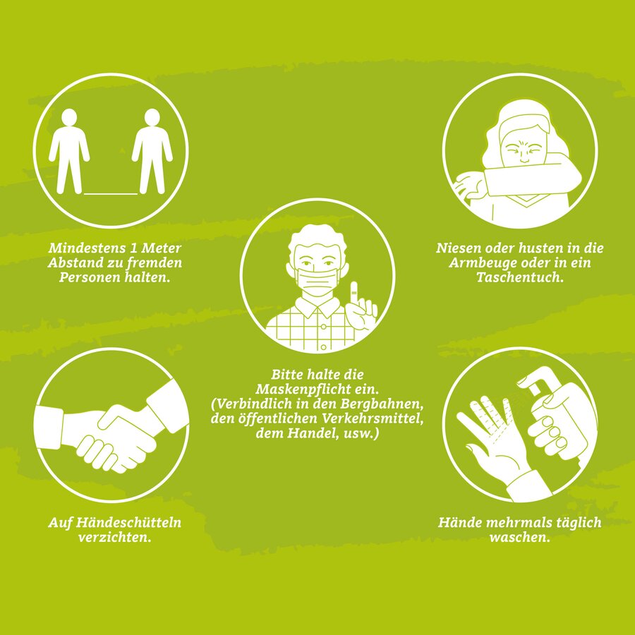 Die Region hat gemeinsam mit den Partnern vor Ort umfassende Maßnahmen getroffen und stellt sich dieser besonderen Situation mit einem durchdachten Sicherheitskonzept. Das Konzept sieht vor allem eine Minimierung der Ansteckungsrisiken vor, um Einheimischen sowie Gäste einen sorgenfreien und sicheren Winter in der Region zu bieten. Das Hauptaugenmerk wird dabei auf die Einhaltung der geltenden Sicherheitsbestimmungen, auf eine umfassende Information von Mitarbeitern und Gästen sowie auf Eigenverantwortung und Wachsamkeit gesetzt.