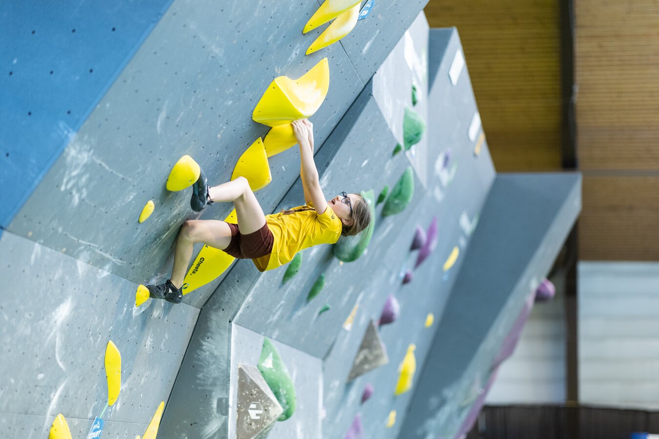 - Finale: Weltcup-Semifinal-Modus mit 4 Bouldern, 5‘ (Min.) Kletterzeit, 15‘‘ (Sec.) Rotation (Quote: 80% aus Qualifikation, max. 10 Finalist:innen)