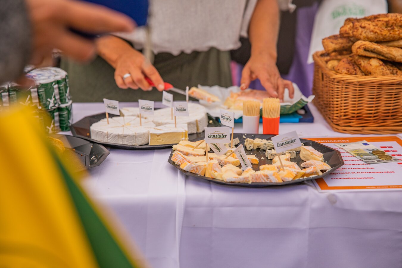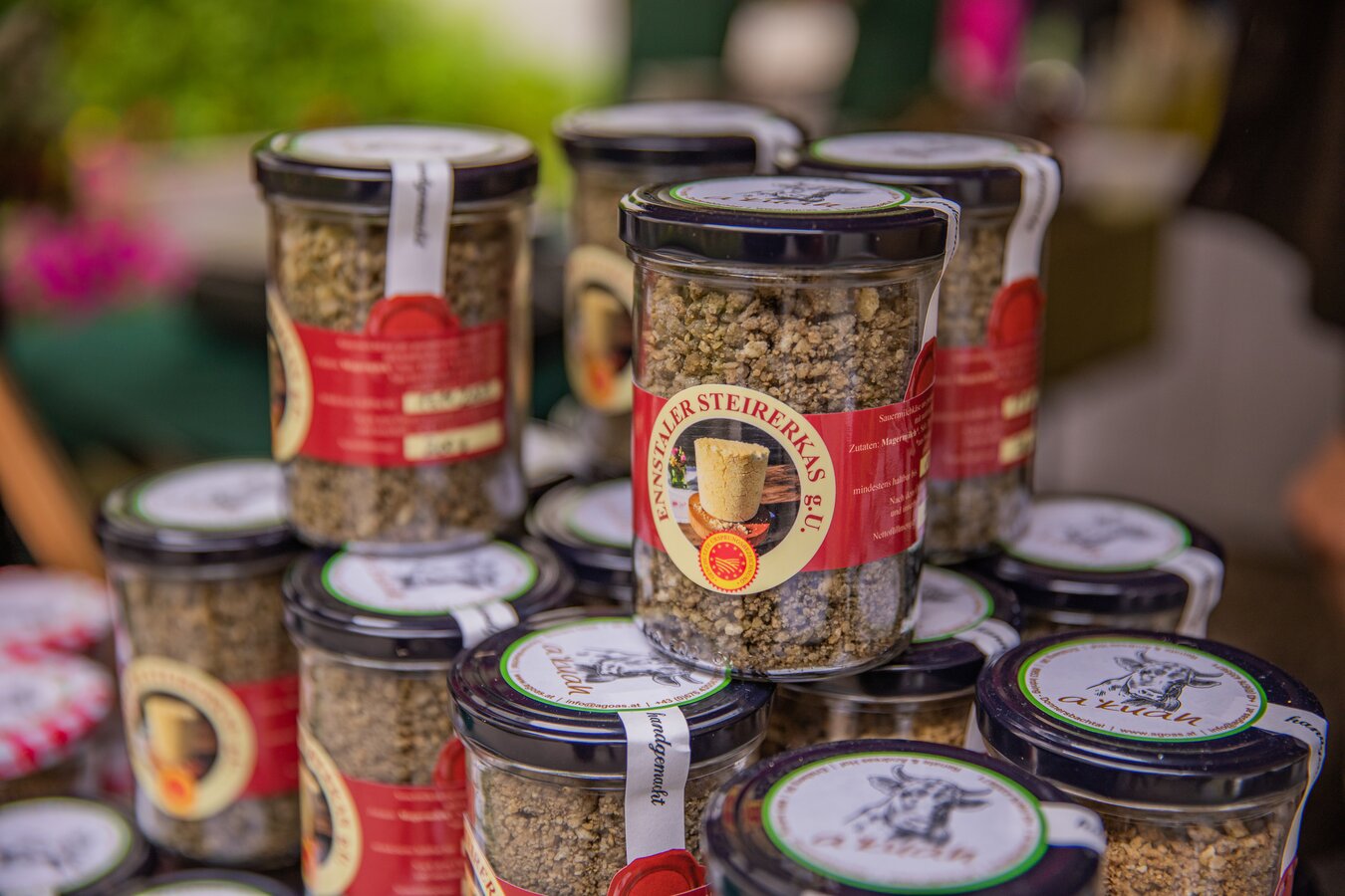 Neben dem "Ennstaler Steirerkas" der Sölker Almen gibt es auch verschiedenste Käsesorten aus Nah und Fern zu erwerben. Dieser ist mit dem höchsten Herkunftsschutz der EU zertifiziert – mit der geschützten Ursprungsbezeichnung (g.U.). Diese garantiert, dass alle Erzeugungsschritte – vom Rohstoff bis zur Produktion – im festgelegten Gebiet erfolgen. Drei Wochen beträgt seine Reifezeit. Dann erhält er sein einzigartiges grau-braun marmoriertes Aussehen und die klumpig-bröselige Konsistenz. Beliebt ist der Steirerkas vor allem für sein pikant-würziges Aroma, das ihn zur idealen Zutat bei Steirerkasnock’n, auf dem Steirerkasbrot oder in Steirerkrapfen - aber auch bei anderen kulinarischen Kreationen wie etwa in Suppen oder auf Aufstrichen macht.