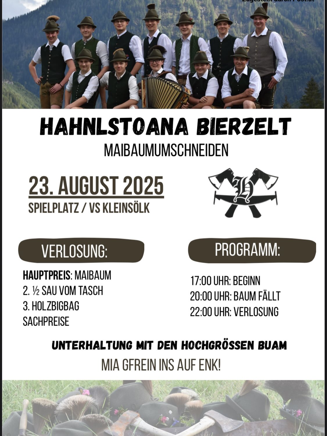 Die Schuhplattlergruppe Hahnlstoana Kleinsölk lädt herzlich zum traditionellen Maibaumumschneiden ein!