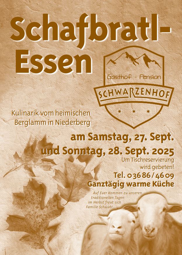 Gerne laden wir euch zu unserem traditionellen Schafbratl-Essen beim Gasthof Schwarzenhof am Niederberg - Kulinarik vom heimischen Berglamm ein.