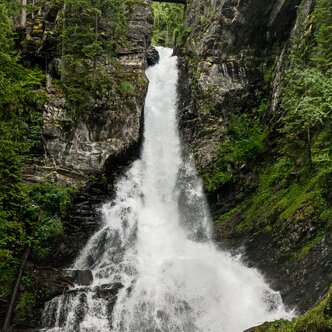 Der Riesachwasserfall ist der größte Wasserfall der Steiermark. Vom Riesachparkplatz im Untertal führt der "Alpinsteig durch die Höll" über zahlreiche Stiegen, Steige und eine Hängebrücke entlang des Riesachwasserfalles bis zur Gfölleralm am Riesachsee. Dieser Steig erfordert Trittsicherheit und Schwindelfreiheit und ist ab der Hängebrücke für Kleinkinder und Hunde nicht geeignet - über die Forststraße (Abzweigung vor Hängebrücke) kann man dennoch zum wunderschönen Riesachsee gelangen.