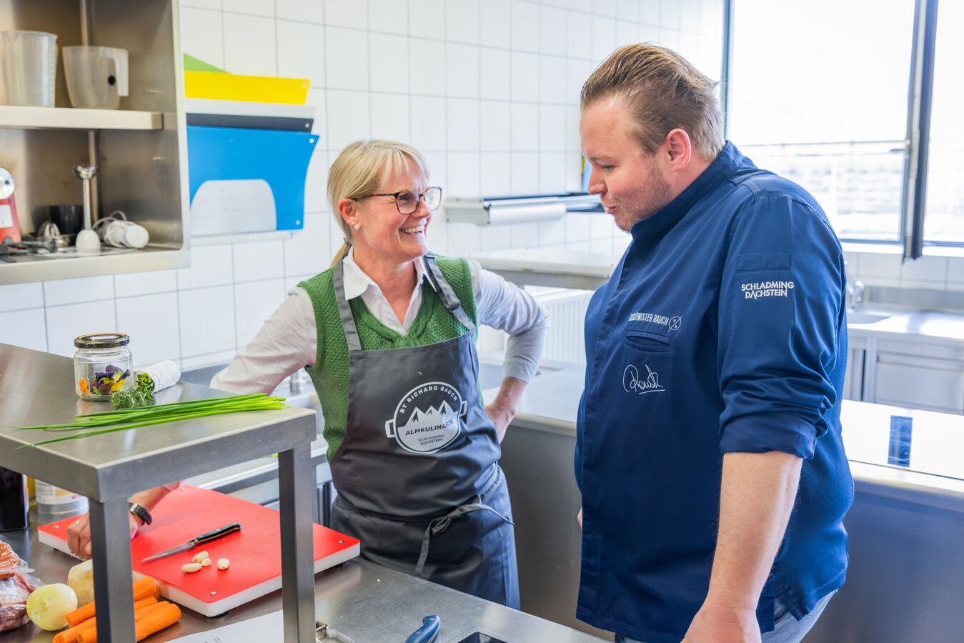 In der Fachschule Gröbming treffen regionale Zutaten auf kreative Kochkunst: Gemeinsam mit 4-Hauben-Koch Richard Rauch und den Hüttenwirt:innen der Region werden neue Gerichte entwickelt. Nach dem Probekochen werden diese auf 16 ausgewählten Hütten in Schladming-Dachstein serviert – ein einzigartiges Geschmackserlebnis aus regionalen Zutaten, kreativ interpretiert.