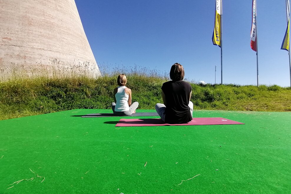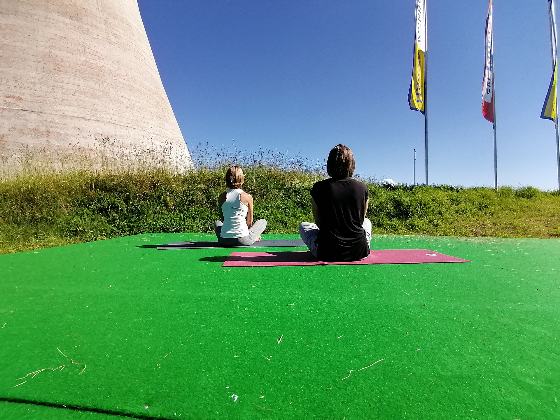 Ganz ohne Musik, nur im Einklang mit der „Natur am Berg“ haben wir gemeinsam die Sonne gegrüßt (spätestens hier war es um mich geschehen), uns geerdet und uns in die Krieger Stellung gebracht.
