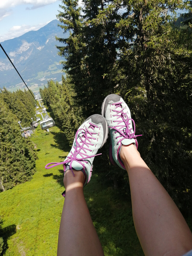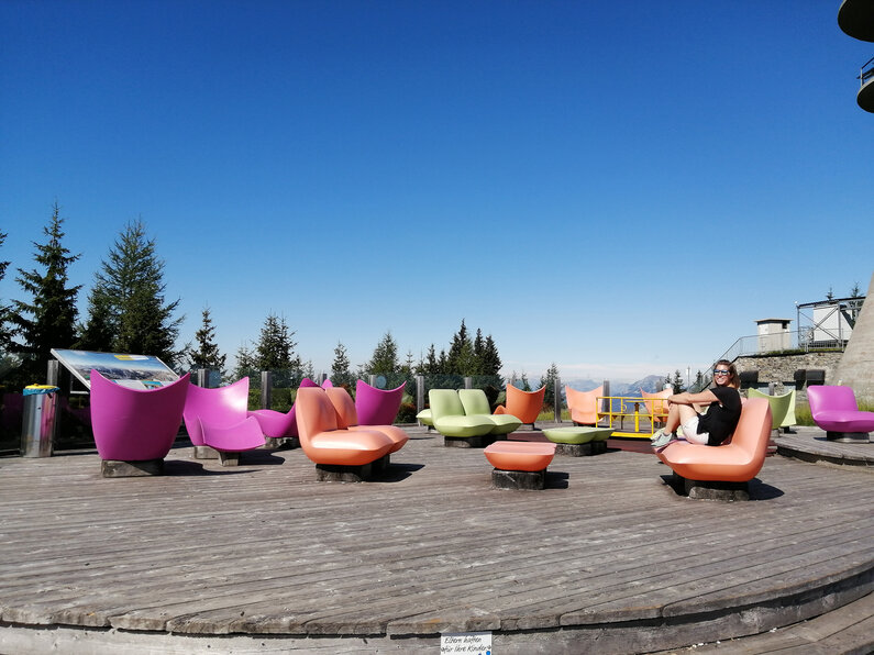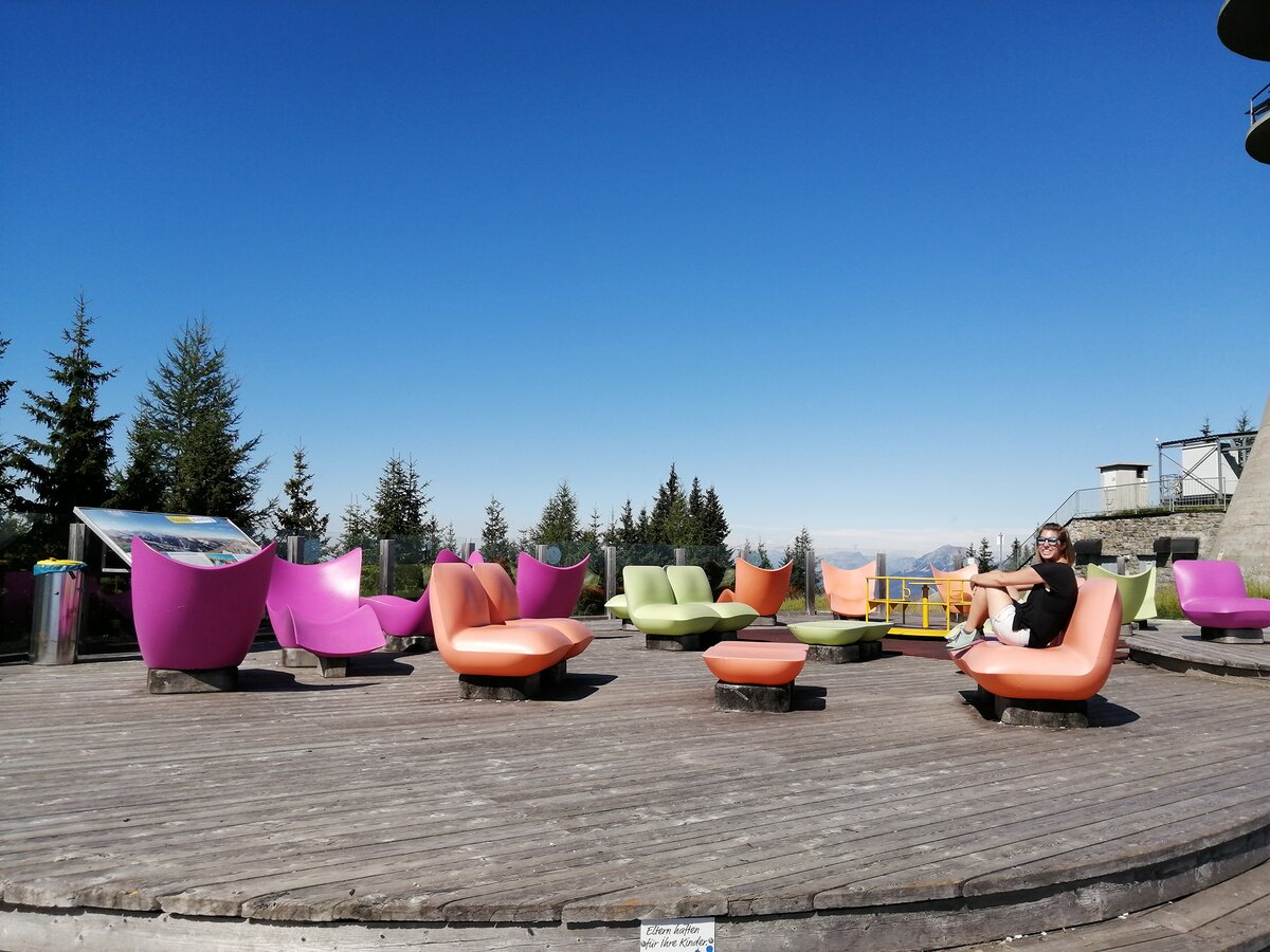 Morgens (um 9.15 Uhr), mit einer der ersten Gondeln bzw. mit dem Quattralpina ging es hinauf zum Senderplateau um pünktlich da zu sein. Die traumhafte Naturkulisse lässt einen ganz automatisch entspannen. Ich muss echt sagen die Location inmitten der herrlichen Berge, in der freien Natur und umgeben von saftigen Almwiesen „hat was“, quasi eine RAUSZEIT ;-)