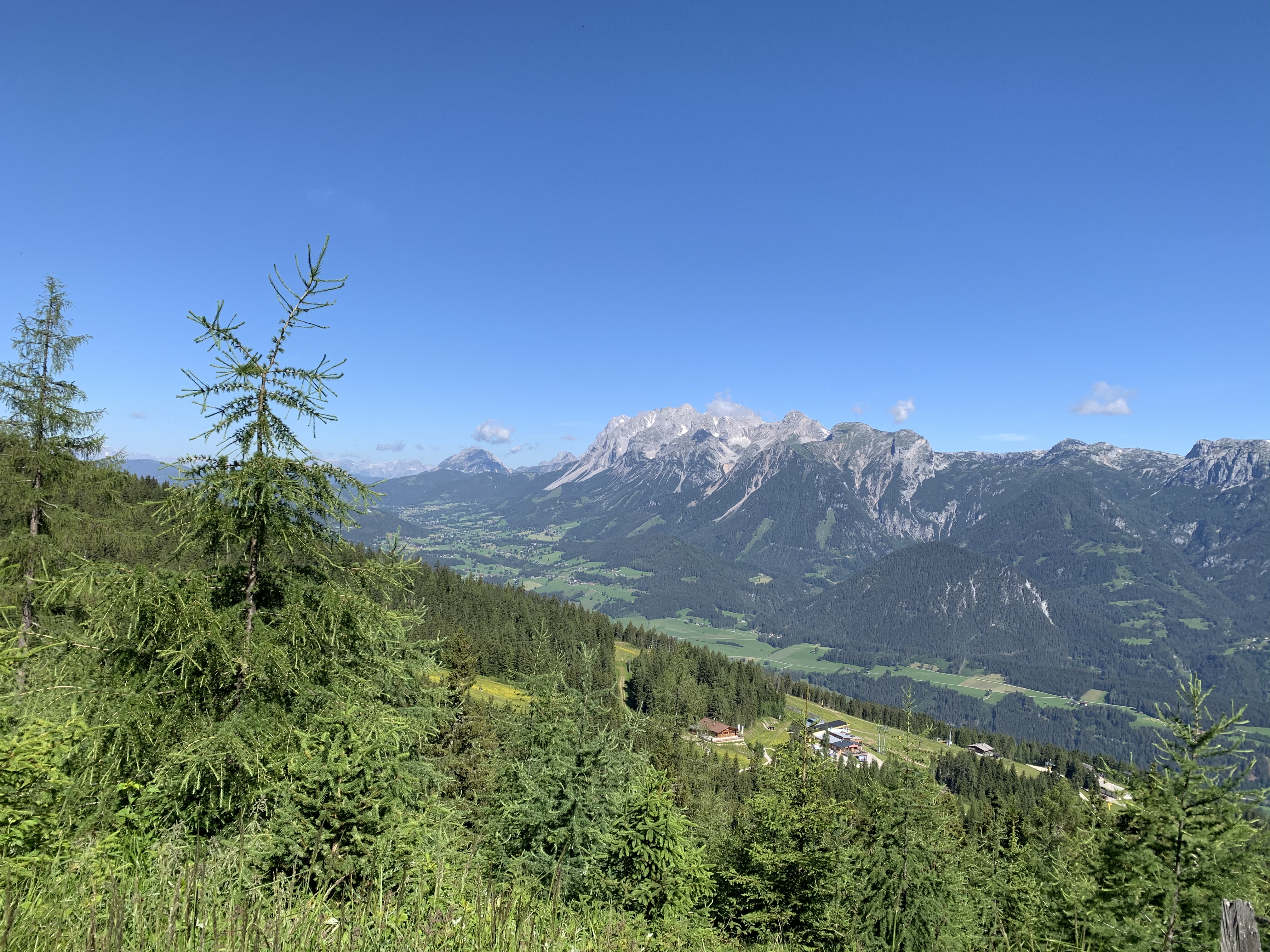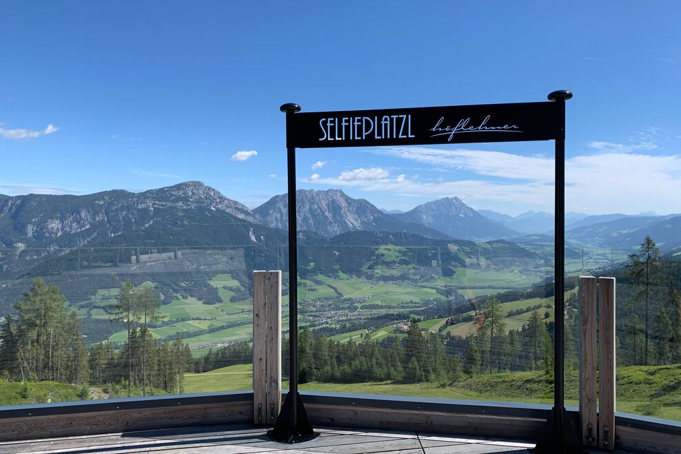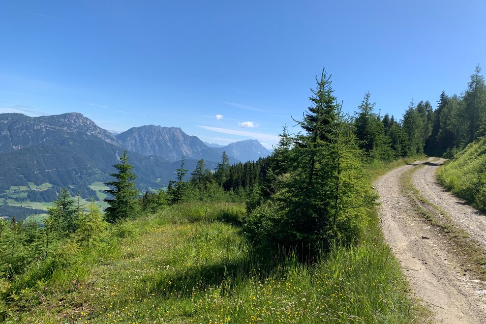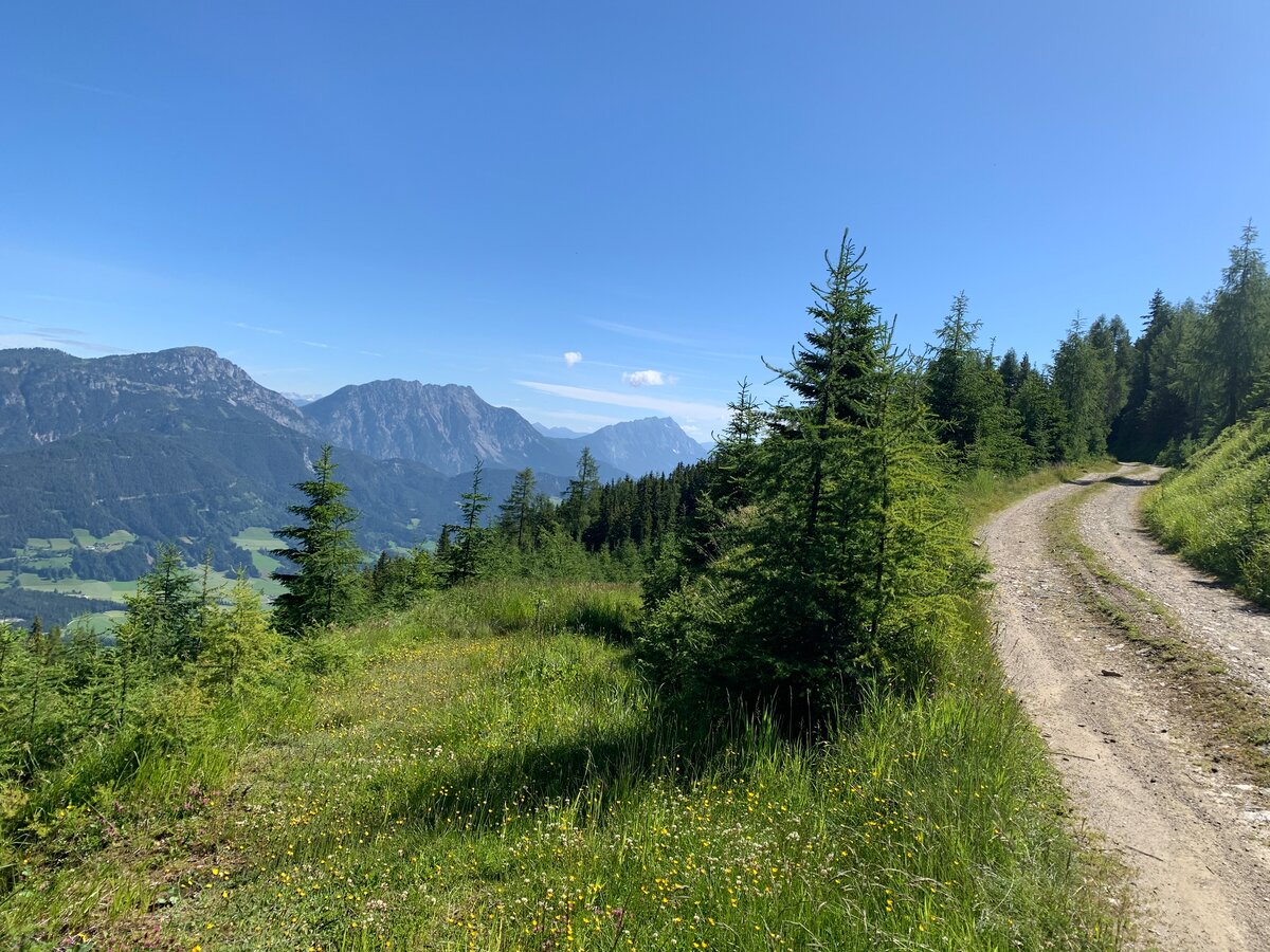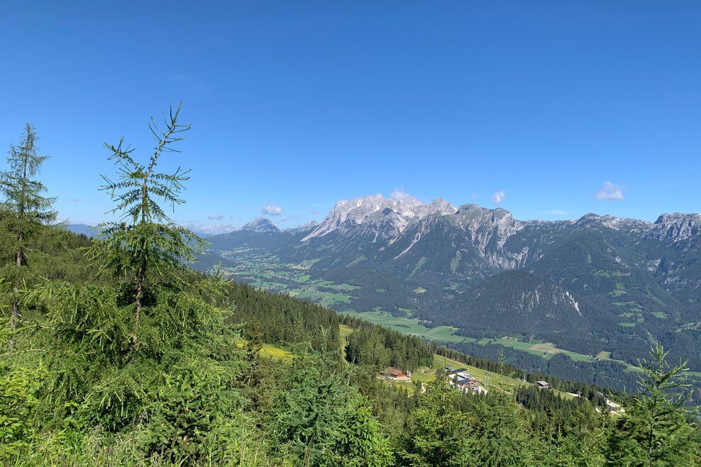 Im Norden lockt der Hohe Dachstein (2.995 m), im Osten begeistert der Anblick Richtung Stoderzinken (2.048 m), Kammspitze (2.139 m) und Grimming (2.351 m)