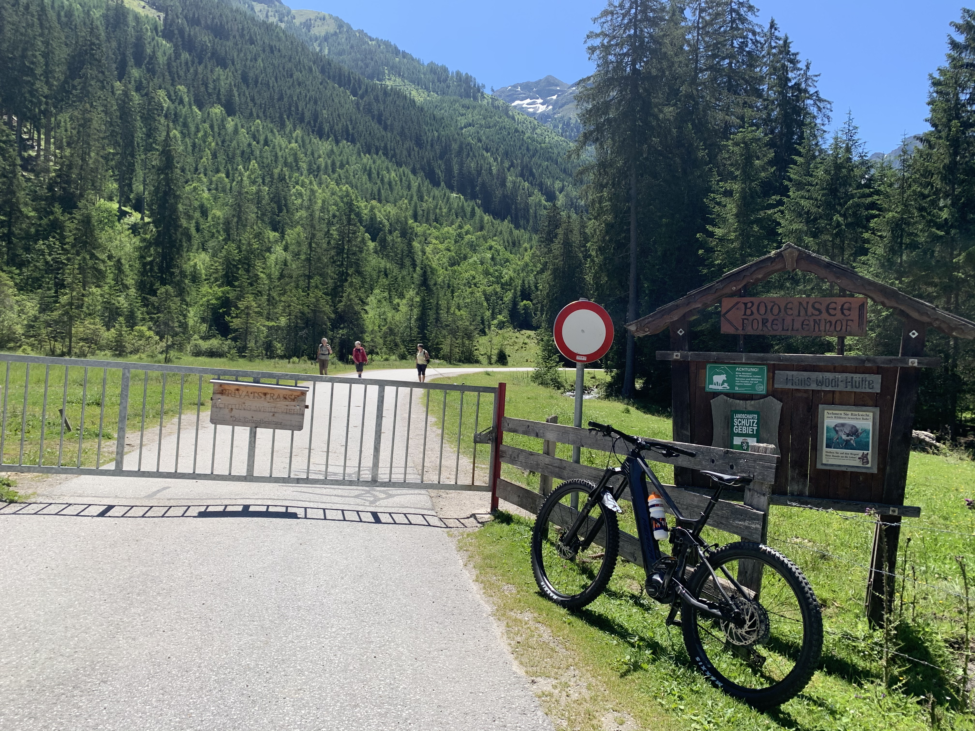 Wir nehmen aber mit den Bikes die Fahrt Richtung "Steirischer Bodensee" auf und folgen wieder der Beschilderung "09 Kaibling Runde". Nach 30 Minuten und einer tollen Fahrt durch tiefgrüne Wälder und einem herrlichen Waldboden unter uns, erreichen wir die Zufahrt zum "Steirischen Bodensee". Beim Anblick der Fahrverbotstafel und dem Schranken wurde unsere Laune kurzzeitig gedrübt, bis uns im fast selben Moment eine Dame erlaubt hat, das Tor zu passieren - somit keine Sorge, es ist erlaubt mit dem Rad oder E-Bike ;-) bis direkt zum See zu fahren. Nach einem kurzen asphaltierten Weg ist das Ziel erreicht, der Steirische Bodensee. Wer diesen See nicht kennt, sollte das schnell ändern - am besten einfach die Bildergalerie oben durchklicken und den nächsten freien Tag reservieren :-).