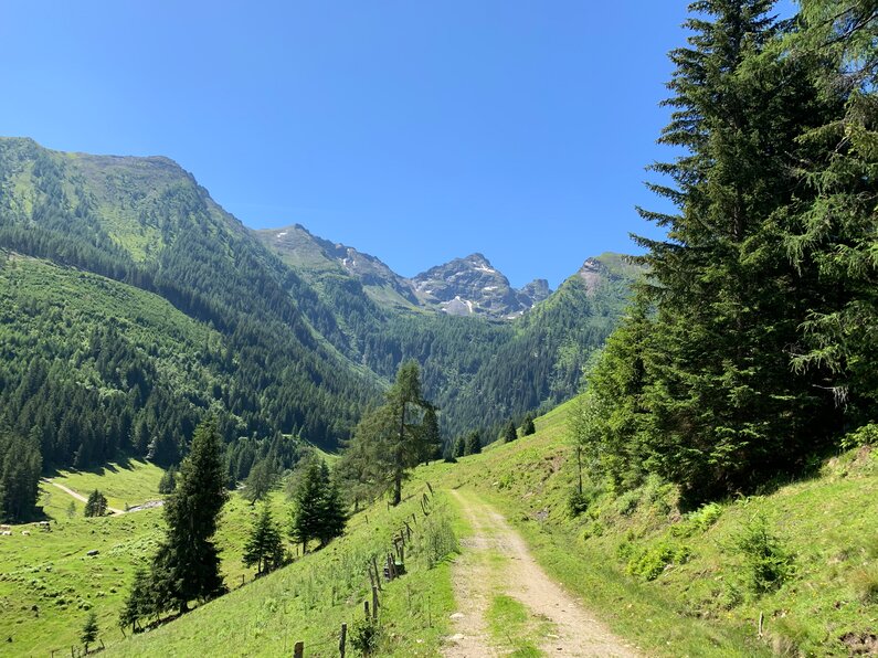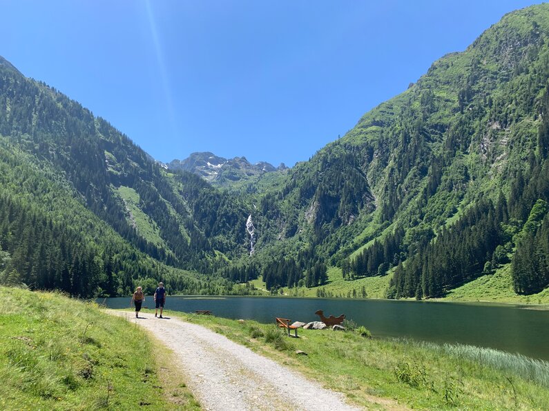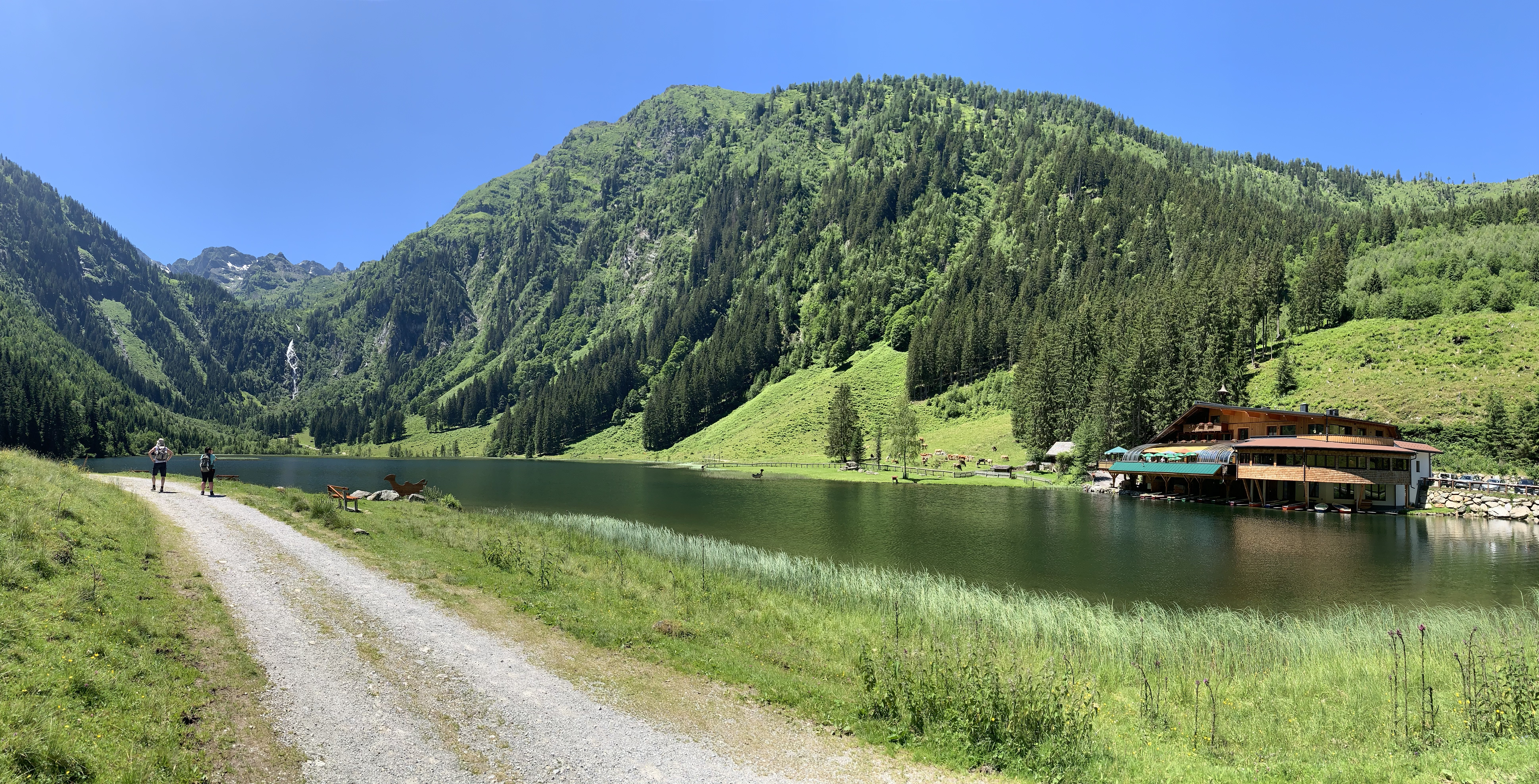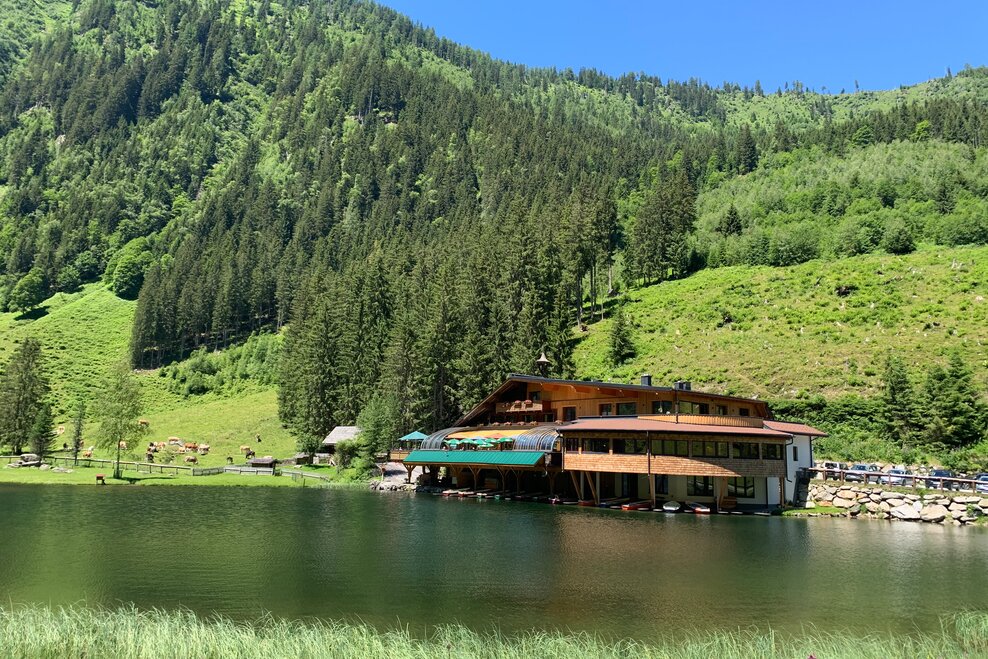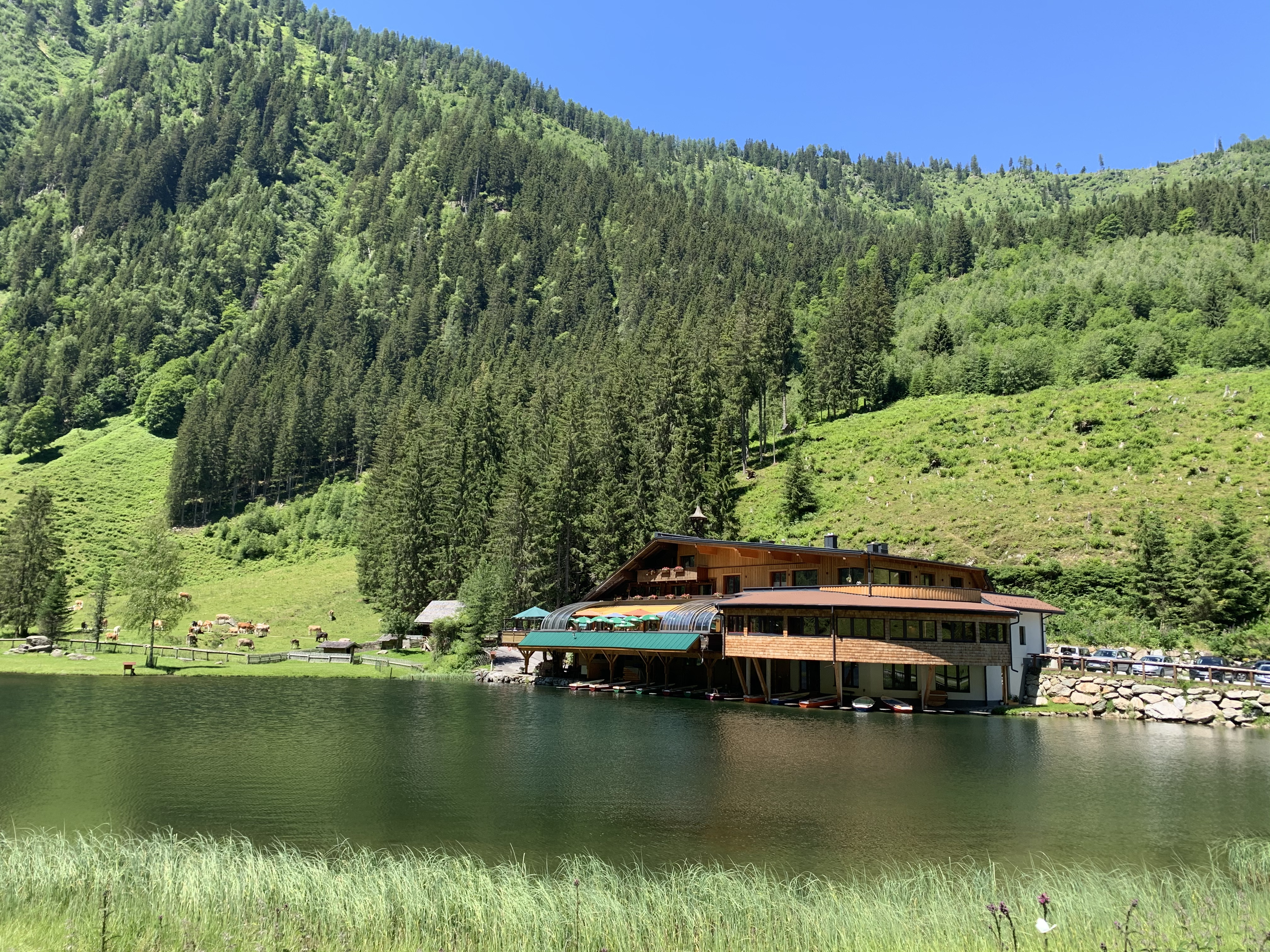 Für alle die noch mehr erleben wollen: Beim Wasserfall im hinteren Bereich des Sees beginnt der zirka eineinhalbstündige Aufstieg zur Hans-Wödl-Hütte (1.533 m). Wir nehmen heute die gemütlichere Variante und lassen uns im Gasthaus Fink noch mit Kaffee und selbstgemachten Topfenstrudel verwöhnen bevor es über das Seewigtal, den Petersberg und Ruperting wieder zurück zur Talstation der 8er-Gondelbahn geht. Der Rückweg ist ein wahres "bergab-Erlebnis" - in nur 20 Minuten gelangt man vom Bodensee wieder zurück zur Hauser Kaibling Talstation.