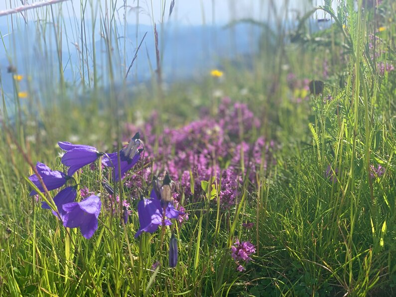 Nach nur halbstündigem Anstieg zum Gipfelglück (2.015 Meter) erfolgt der Abstieg zum Rossfeldsattel und weiter zur Einkehr im Naturidyll Kaiblingalm.