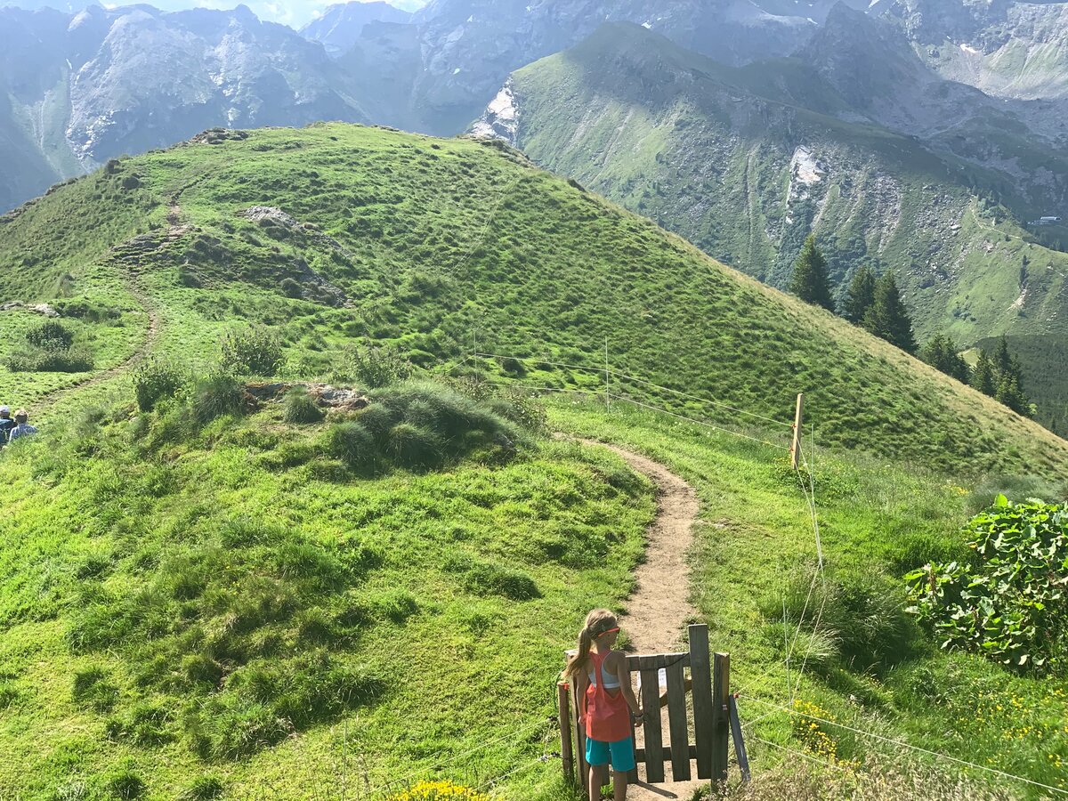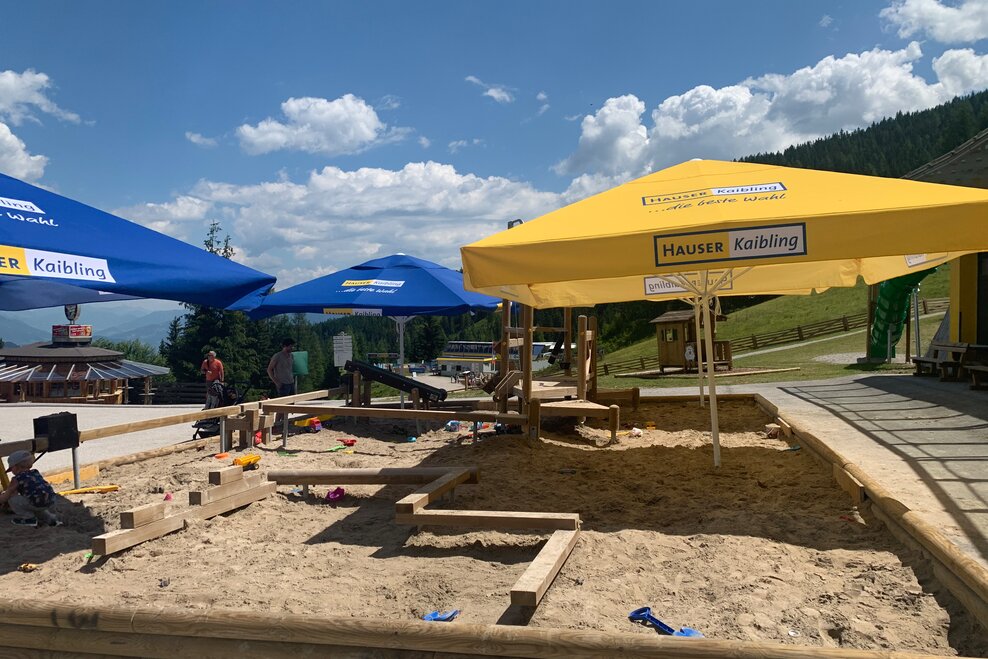 An der 8er-Gondelbahn Bergstation angekommen ist es schon zum ersten Mal schwer weiterzukommen, denn eine große Sandkiste und daneben gemütliche Sitzgelegenheiten mit Kaffee und frischem Kuchen im „Platzhirsch“ heißen uns quasi willkommen. Aber wir haben ein Ziel, also verspreche ich noch eine Eistüte beim „Platzhirsch“ wenn wir wieder zurückkommen ;-)