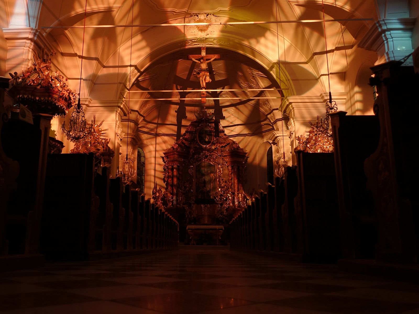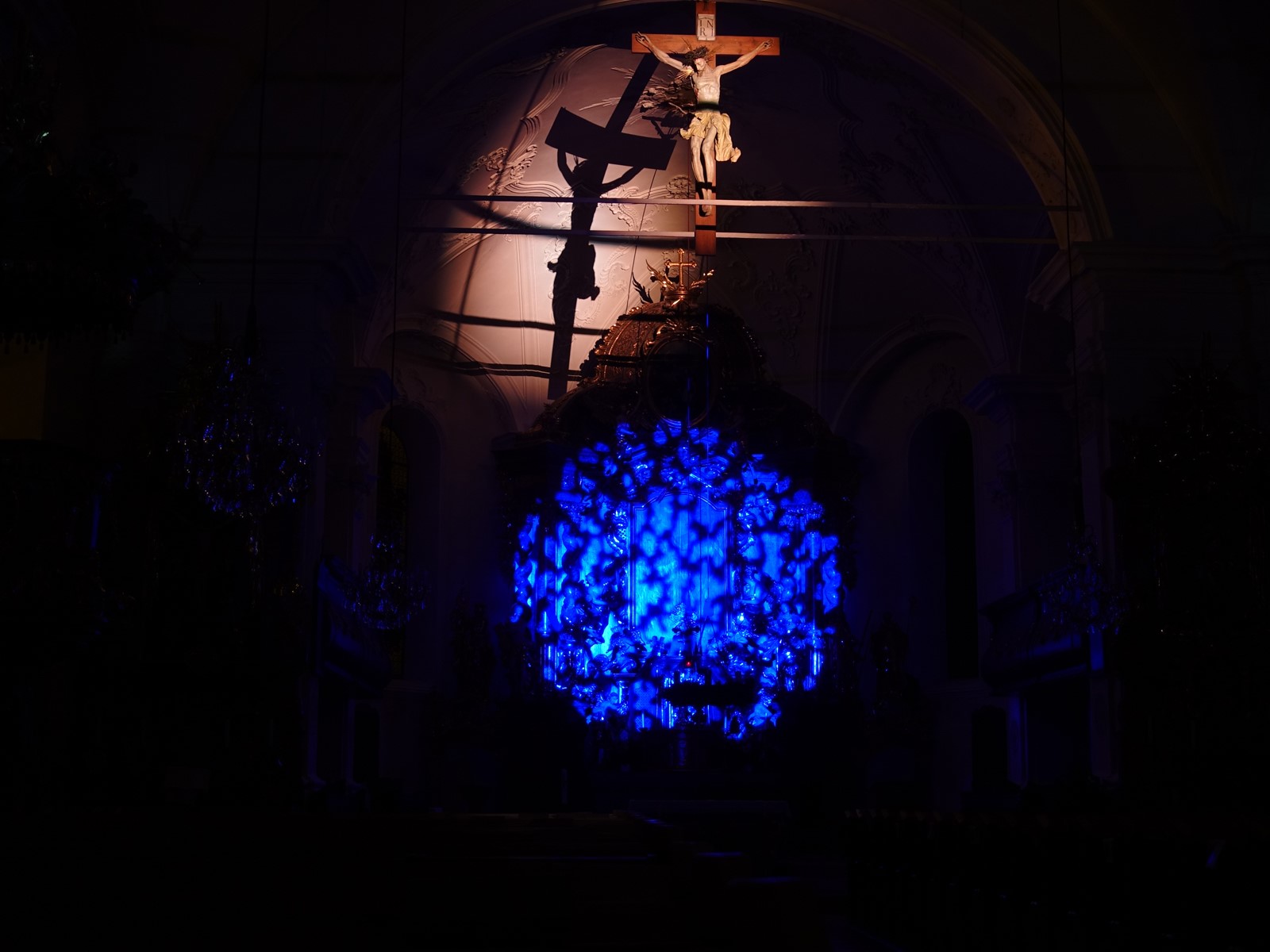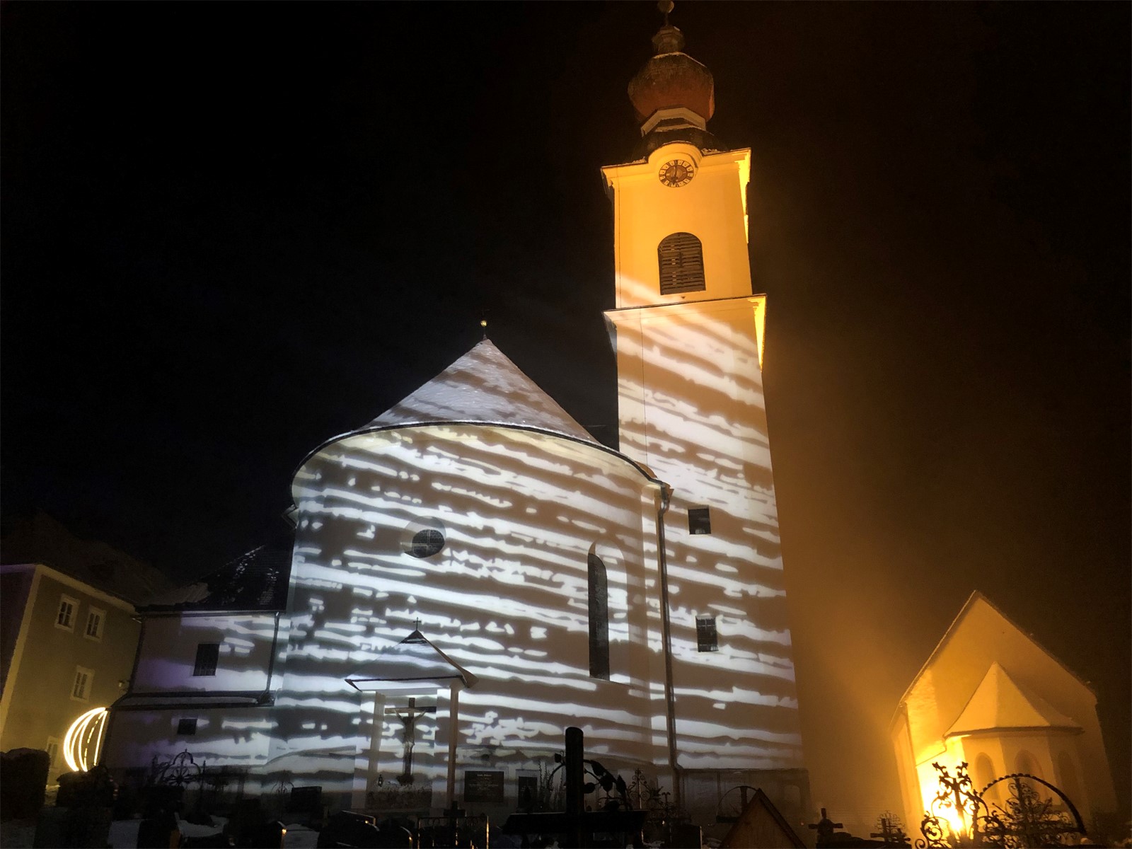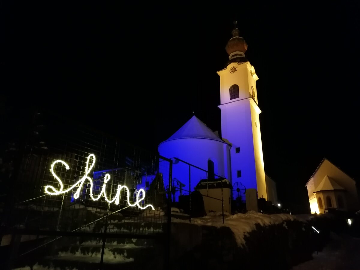 Als weiteres Highlight entlang des Lichterpfades entpuppt sich für mich die Pfarrkirche Haus. Beim Eintreten ist der Altarbereich in blaues Licht getaucht, das beleuchtete Kreuz wirft seinen Schatten auf das Gewölbe - einfach dastehen und sich auf die Bedeutung von Advent besinnen. Die Ankunft unseres Retters zu erwarten. Plötzlich wechselt das Licht, die Kirche erfährt eine ganz neue Beleuchtung, die Gedanken dürfen noch etwas weiter kreisen. Auch für das Entzünden einer kleinen Kerze - mit guten Gedanken für die Liebsten - ist durchaus genug Zeit.