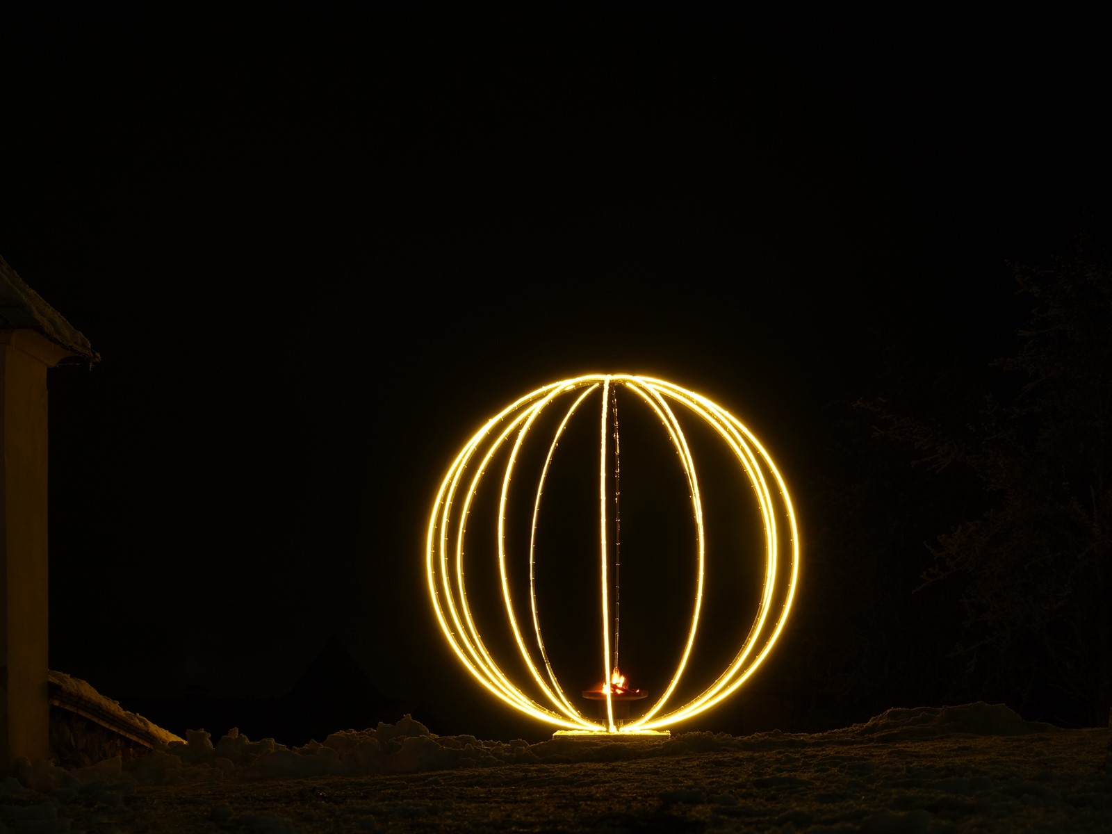 - Im Herzen des Objektes brennt ein Feuer, dass für wärmende Gedanken sorgt, jedoch auch am Brennen gehalten werden muss.