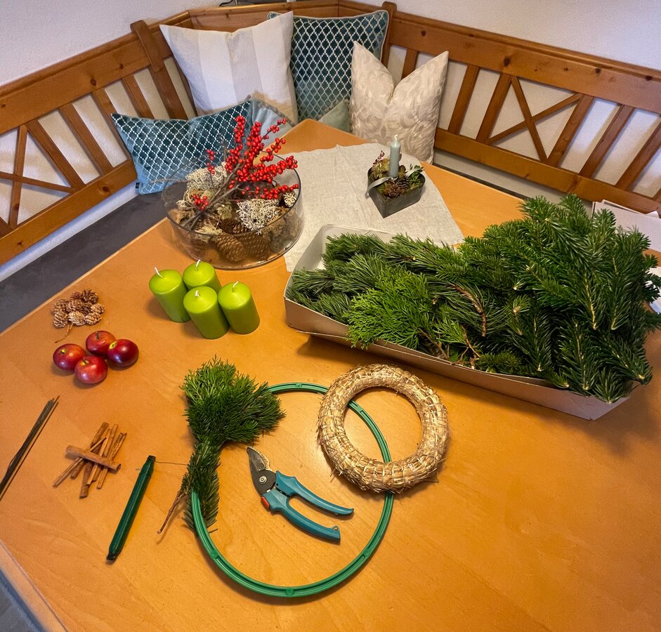 Mit Materialian aus dem Wald, Kerzen und ein bisschen Dekoration kann man mit etwas Geschick den eigenen Adventkranz basteln.