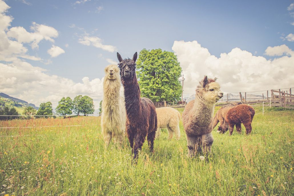 Neben der Größe der kräftigeren Lamas erkennt man diese auch an ihren lustigen „Bananenohren“. Und während das Alpaka mit seinem Teddybärengesicht die Herzen zum Schmelzen bringt, präsentiert sich das Lama als besonders stolzes Tier.