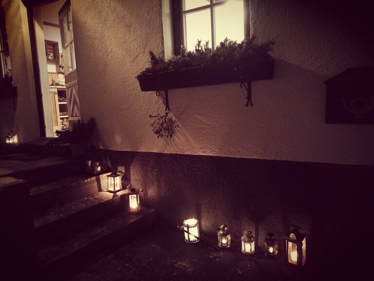 Bei uns sitzen wir am späten Nachmittag schon immer zusammen und trinken gemeinsam Kaffee und Tee. Wir genießen die selbstgemachten Kekse und typisch für diese Jahreszeit unser Kletzenbrot. Jeder freut sich schon. Die Kinder sind ganz aufgeregt und fragen alle gefühlten fünf Minuten, wann wir doch endlich gehen. Die gebastelten Laternen vom Martinsfest kommen jetzt wieder zum Einsatz. Jedes Kind ist ganz stolz, hier mit seiner Laterne hinter der „Maria“ nach zu gehen.