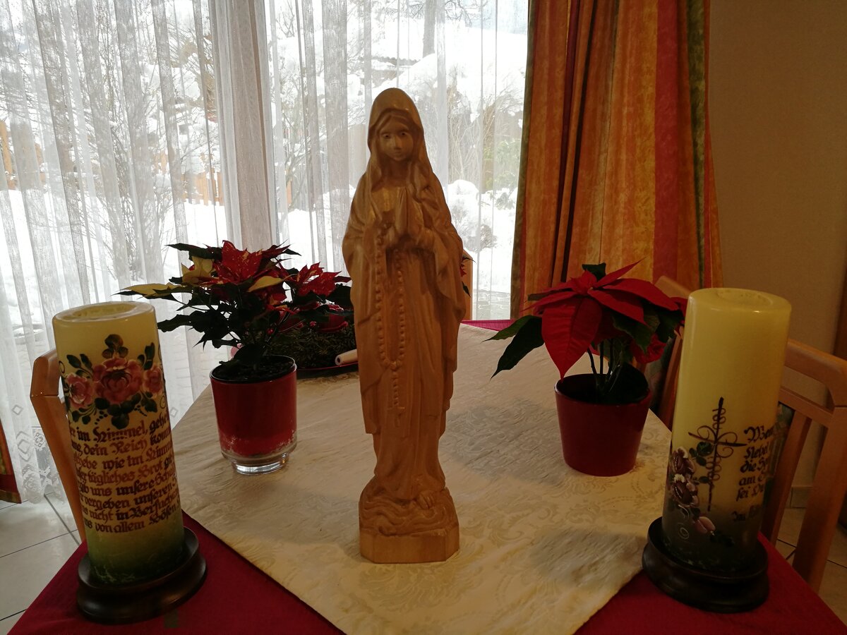 Ein schöner katholischer Brauch, der bei Groß und Klein sehr beliebt ist. Die Statue „Maria“ wird in der letzten Woche vor Weihnachten von der Kapelle aus, an jeden Tag zu einem anderen Haus getragen.