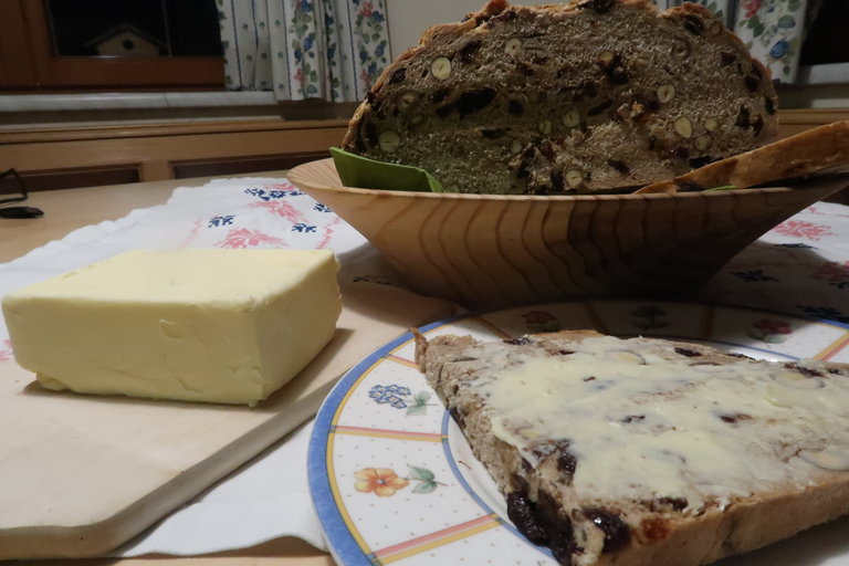 Das Kletzenbrot hatte vor allem am Heiligen Abend eine besondere Bedeutung, erzählt mir meine Oma weiter. Am Nachmittag wurde noch vor der Stallarbeit das Kletzenbrot angeschnitten, dies wurde traditionell mit Butter, Speck und Knoblauch serviert, dazu gab´s ein Stamperl Schnaps und die Gesundheit für das nächste Jahr war wieder garantiert. Ich musste lachen, da es auch in meiner Familie noch der Brauch ist, diese außergewöhnliche kulinarische Kombination am Heiligen Abend zu essen.