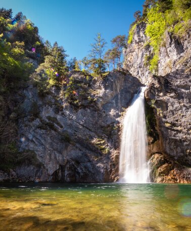Ein idealer Ort für Mensch und Tier, um gemeinsam Zeit zu verbringen und sich vom Schauspiel des Wassers faszinieren zu lassen, wenn die gut 40m hohe Gischt des Wasserfalles in einer "Lagune" mündet. Startpunkt der Tour ist beim neuen Parkplatz direkt nach der Einfahrt Salza. Man folgt der Beschilderung entlang der Straße bis man zur Brücke gelangt, wobei es danach rechts über einen Steg weiter zum Wasserfall geht.