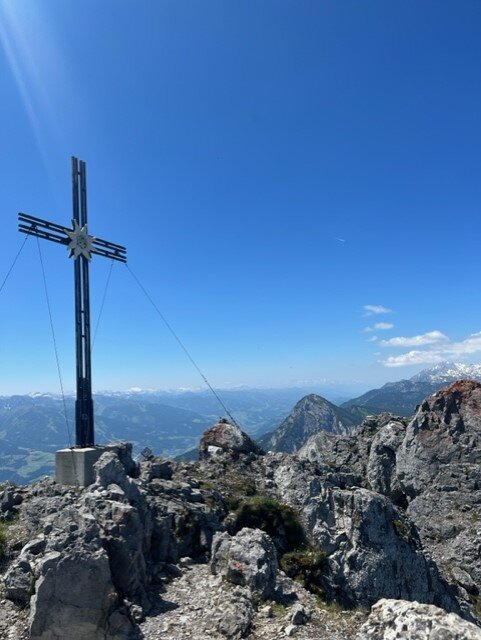 Das Gipfelkreuz des Grimmings liegt zwar im Gemeindegebiet Bad Mitterndorf, malerisch am Fuße des imposanten Berges gelegen und namensgebend befindet sich das durch Kultur und Traditionsgeprägte Dorf St. Martin am Grimming.