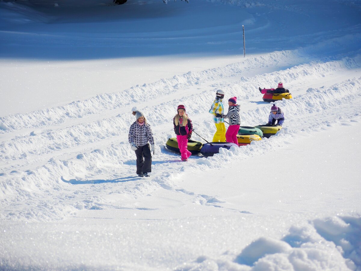 Genauso lange wie die Jausenstation, gibt es auch schon das Snowtubing auf der Rösteralm - ein besonderes Highlight bei jedem Besuch. Früher wurde noch mit alten Traktorreifen gerutscht, heute sausen Gäste in den bunten Reifen auf drei speziell präparierten Bahnen den Hang hinunter. Hast Du das schon einmal ausprobiert?