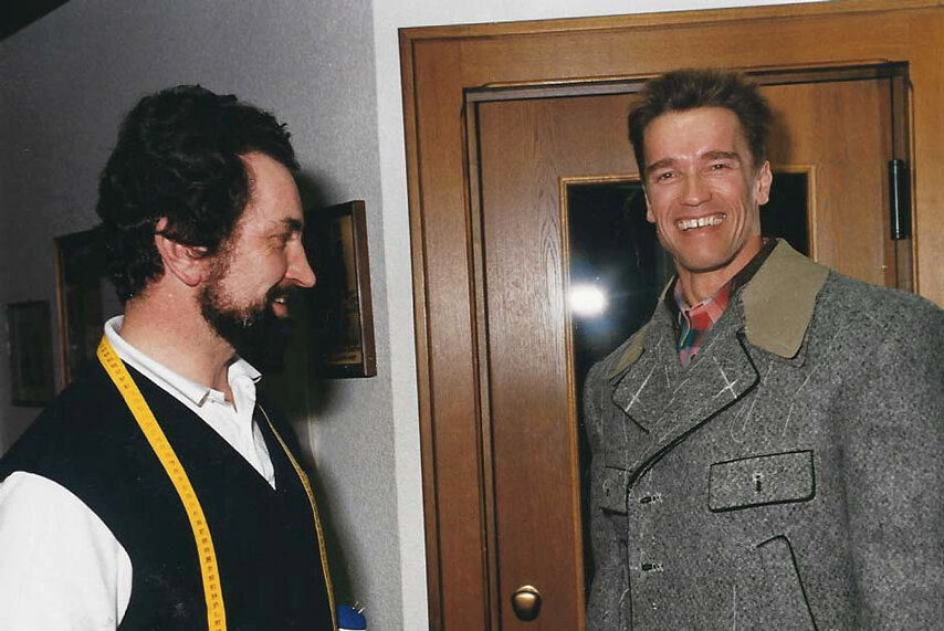 In all seinen Jahren im Familienbetrieb hat Mathias Schrempf schon viele Aufträge von einheimischen Kunden, aber auch von Gästen, die in der Ramsau zu Besuch waren, erhalten. Sein prominentester Kunde bisher war wohl Arnold Schwarzenegger. „Vor langer Zeit hat ihm mein Vater einen Schladminger Überrock genäht, weil dem Bodybuilder damals einfach keine Standardgrößen gepasst haben“, sagt Mathias. Seither ist der „Terminator“ immer wieder einmal Kunde der Schneiderei gewesen, zuletzt bei der Ski-WM 2013. An einen anderen Auftrag erinnert sich der Schneider auch gerne zurück: Im Zuge der Öblarner Festspiele galt es für den Schneidermeister den Gehrock von Erzherzog Johann, der in der Aufführung eine wichtige Rolle spielt, nachzubilden. „Wenn man sein selbst gefertigtes Kleidungsstück auf der Bühne sieht, blickt man mit ganz anderen Augen drauf, als die Darsteller oder andere Zuseher.“