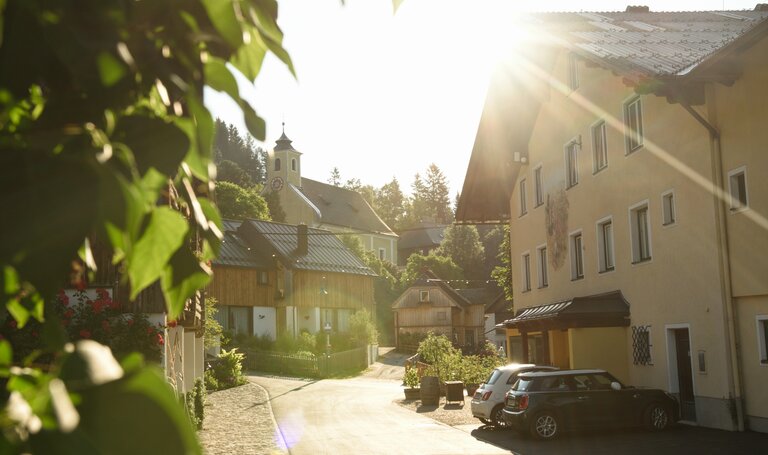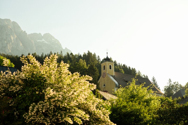 Der markante Grimming prägt nicht nur das Landschaftsbild des Ennstals, sondern ist auch namensgebend für jenes Dorf, das zu seinen Füßen liegt – St. Martin am Grimming.
