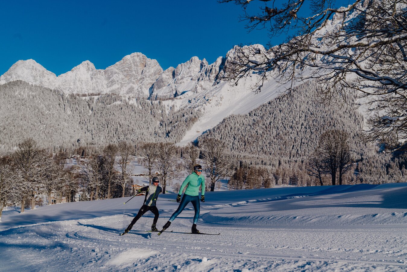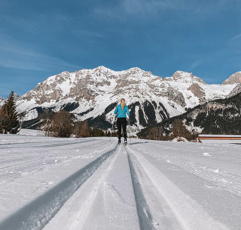 In den letzten Jahren wurde das Langlaufen für Alt und Jung zu einer beliebten Wintersportart. Die Ausdauersportart spricht nicht nur viele Muskelgruppen an, sie verbrennt auch richtig viele Kalorien! Langlaufen hat zusätzlich zum Gesundheitsaspekt auch einen Erlebniswert. Auf den frisch gespurten Loipen durch die tiefverschneite Ramsau am Fuße des Dachsteins! Was will man mehr?