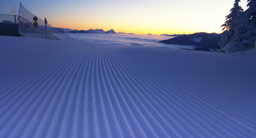 Die Sonne kämpft sich über die Berge, im Tal hängt der Nebel, die Skipisten sind noch leer und vor einem präsentiert sich ein frisch präparierter weißer Teppich. Es gibt Tage, da zahlt sich das frühe Aufstehen aus. Das Gefühl, wenn man als Erster seine Spur in den Schnee zieht – unbeschreiblich! Zu verdanken haben wir das unseren Pistenmannschaften – die in den Abend- und Nachtstunden tolle Arbeit leisten und zusammengeschobene Schneehaufen in eine perfekte Piste verwandeln, und natürlich der technischen Entwicklung.