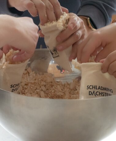 Mit diesen Schladming-Dachstein-Zirbensackerl wurde nicht nur ein wohlriechendes Souvenir aus der Region geschaffen, das als Geschenk für Pressereisen und Veranstaltungen Verwendung findet.
