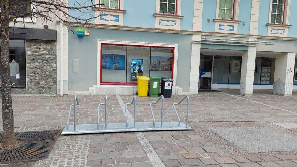 - Das Zentrum von Schladming rund um den Hauptplatz ist ein viel frequentierter Treffpunkt mit Cafés und Verweilmöglichkeiten. Das geordnete Abstellen von Fahrrädern hilft dabei, das Platzerlebnis möglichst positiv zu gestalten.