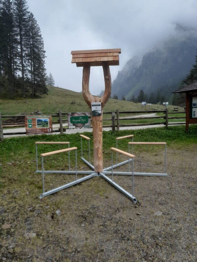 Am Parkplatz Breitlahn wurde eine neue Bike & Hike Station installiert, da die alten Radständer schon in die Jahre gekommen sind und diese nicht mehr den aktuellen Anforderungen entsprachen. Mit dem Ziel, den steigenden Bedarf an Fahrradabstellplätzen zu decken und gleichzeitig die Besucherlenkung im beliebten Bike & Hike-Gebiet Breitlahn zu optimieren wurde das Modernisierungsprojekt gestartet. Die Fahrradständer wurden im modernem, sechseckigem Design konstruiert und in enger Zusammenarbeit mit regionalen Handwerkern gefertigt.