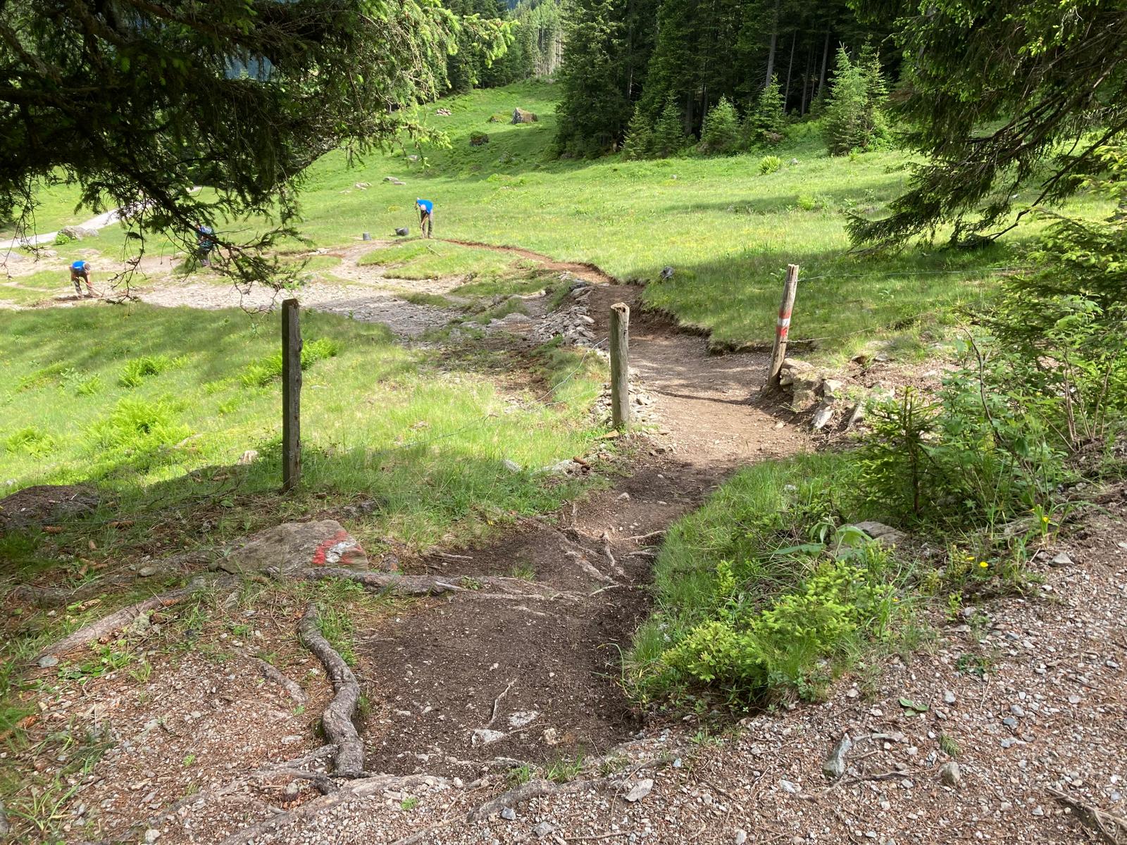 Im Frühling und Frühsommer konnten wir die Wegehalter in unserer Region bei einigen Wegprojekten und Generalsanierungen unterstützen. Dabei wurden Stufen gebaut, Geschieberückhalte umgesetzt, Abkürzungen geschlossen, Engstellen beseitigt und Wege teilweise neu trassiert. So wurden der Höhenweg Silberkar, der Jungfrauensteig und der Wanderweg zum Duisitzkar fit für die nächsten Jahre gemacht. Bereits im Vorjahr erfolgte zudem die Generalsanierung des Ramsauer Klettersteiges.