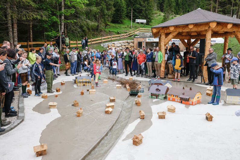 Neben vermittelten Infos zum Thema Naturgefahrenmanagement können die Simulationen von Muren, Hochwasser und Überschwemmungen durch die Modellbesucherinnen und Modellbesucher aller Altersgruppen aktiv mitgestaltet werden.